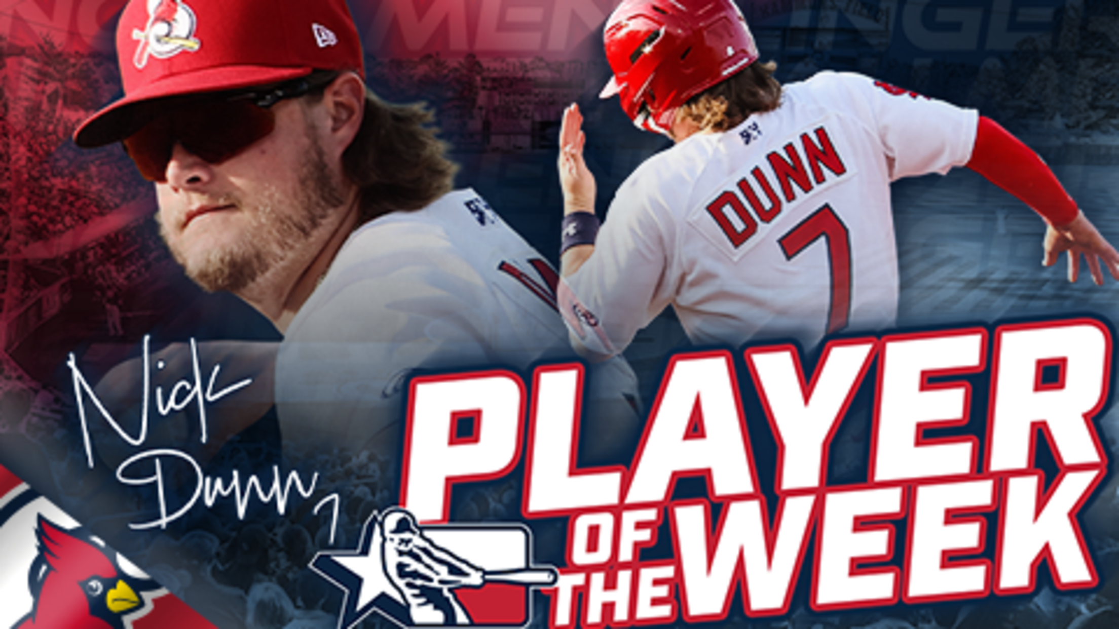 SPRINGFIELD, Mo. -- Minor League Baseball announced on Monday that Springfield Cardinals 2B Nick Dunn has been named the Texas League Player of the Week for July 3-9. This marks the third time this season that a Springfield Cardinal has won a weekly league award, with RHP Brandon Komar winning the Texas League Pitcher of the Week award for April 24-30 and INF Noah Mendlinger winning Texas League Player of the Week for May 22-28.