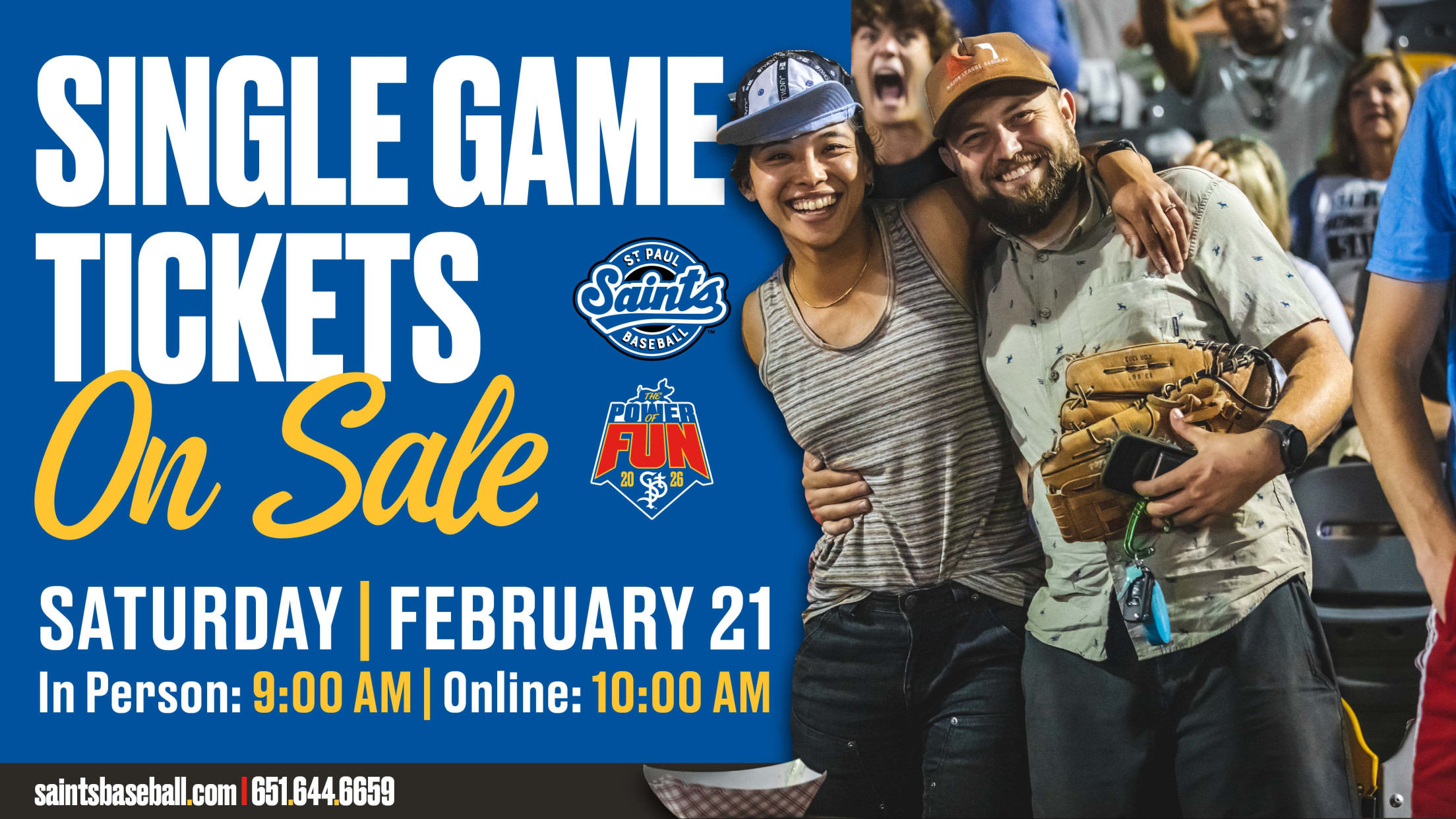 ST. PAUL, MN (February 17, 2026) - Whether your goal is to get a glimpse of a top Minnesota Twins prospect, snag a foul ball, or catch the side-splitting humor at CHS Field, the St. Paul Saints promise to keep people of all ages amused during the 2026 season. Whether