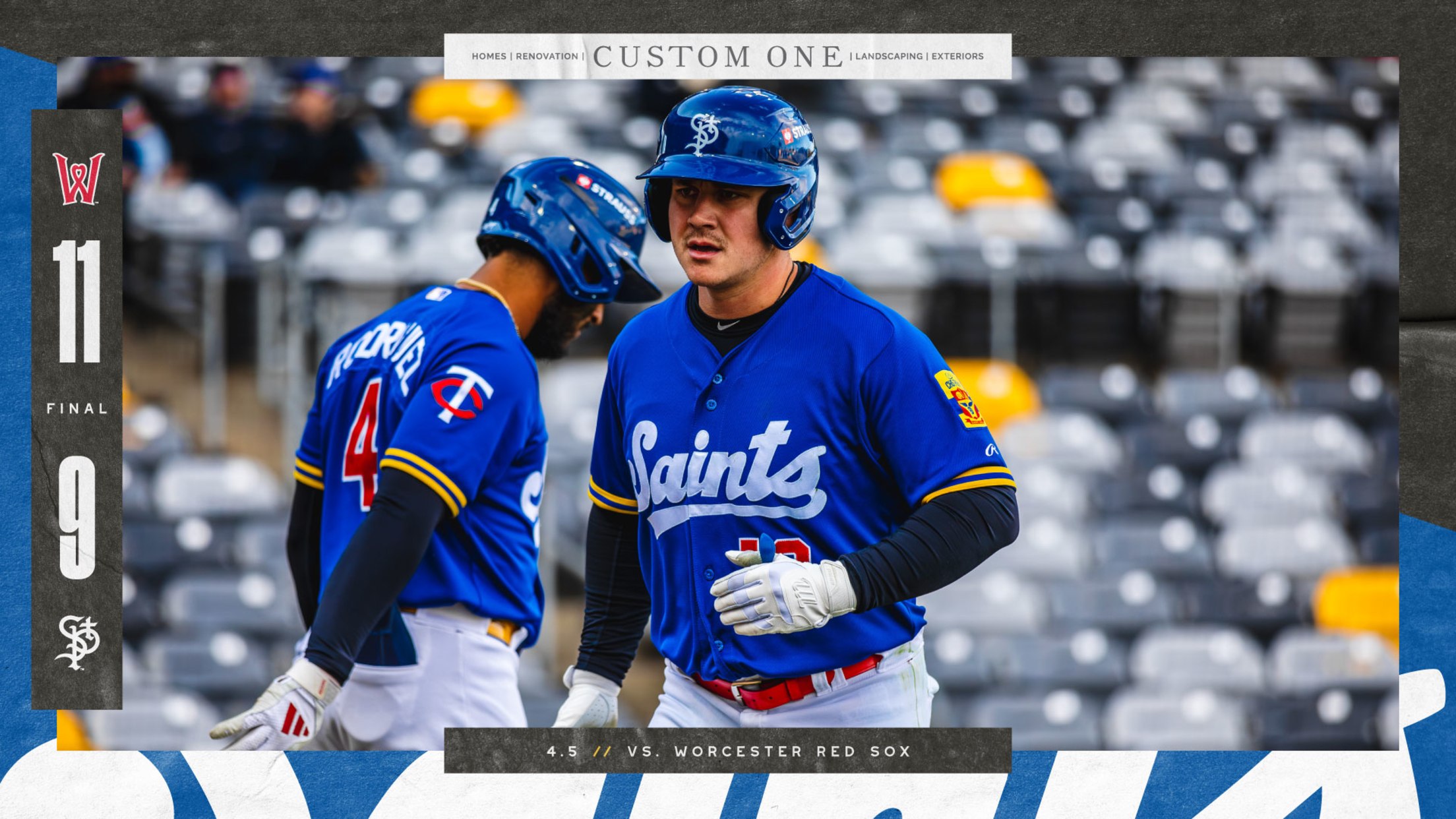 After losing a lead in the final inning in Game 1 of the doubleheader, the St. Paul Saints nearly returned the favor in Game 2. They trailed 8-1 after three innings, but scored seven runs over four innings, including a game-tying home run when they were down to their final out in the seventh inning. Unfortunately, the Saints still fell to the Worcester Red Sox 11-9 in 10 innings in Game 2 of a doubleheader at CHS Field in front of 2,701.