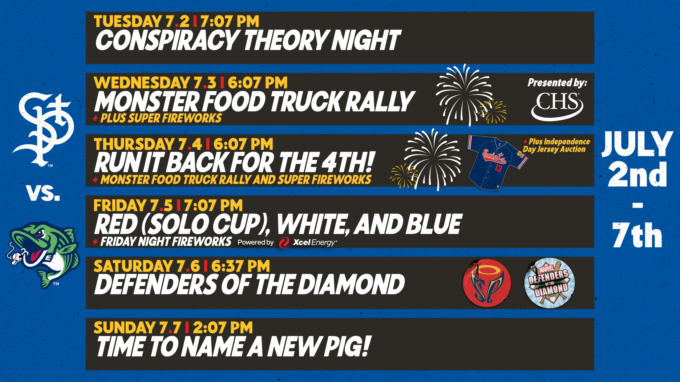 Friday, July 5 vs. Gwinnett Stripers, 7:07 p.m. – Red, White, and Blue with Post-Game Fireworks powered by Xcel Energy