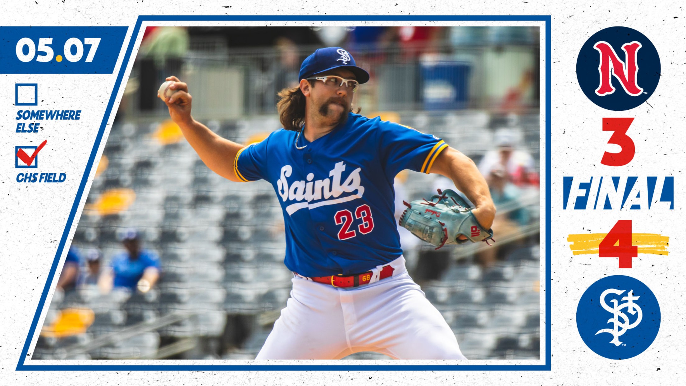 ST. PAUL, MN (May 7, 2023) - Randy Dobnak continued to provide steady starting pitching for the St. Paul Saints on Sunday. Michael Helman provided the power, a big three-run homer in the sixth. Add the two together and the Saints defeated the Nashville Sounds 4-3 on in game on
