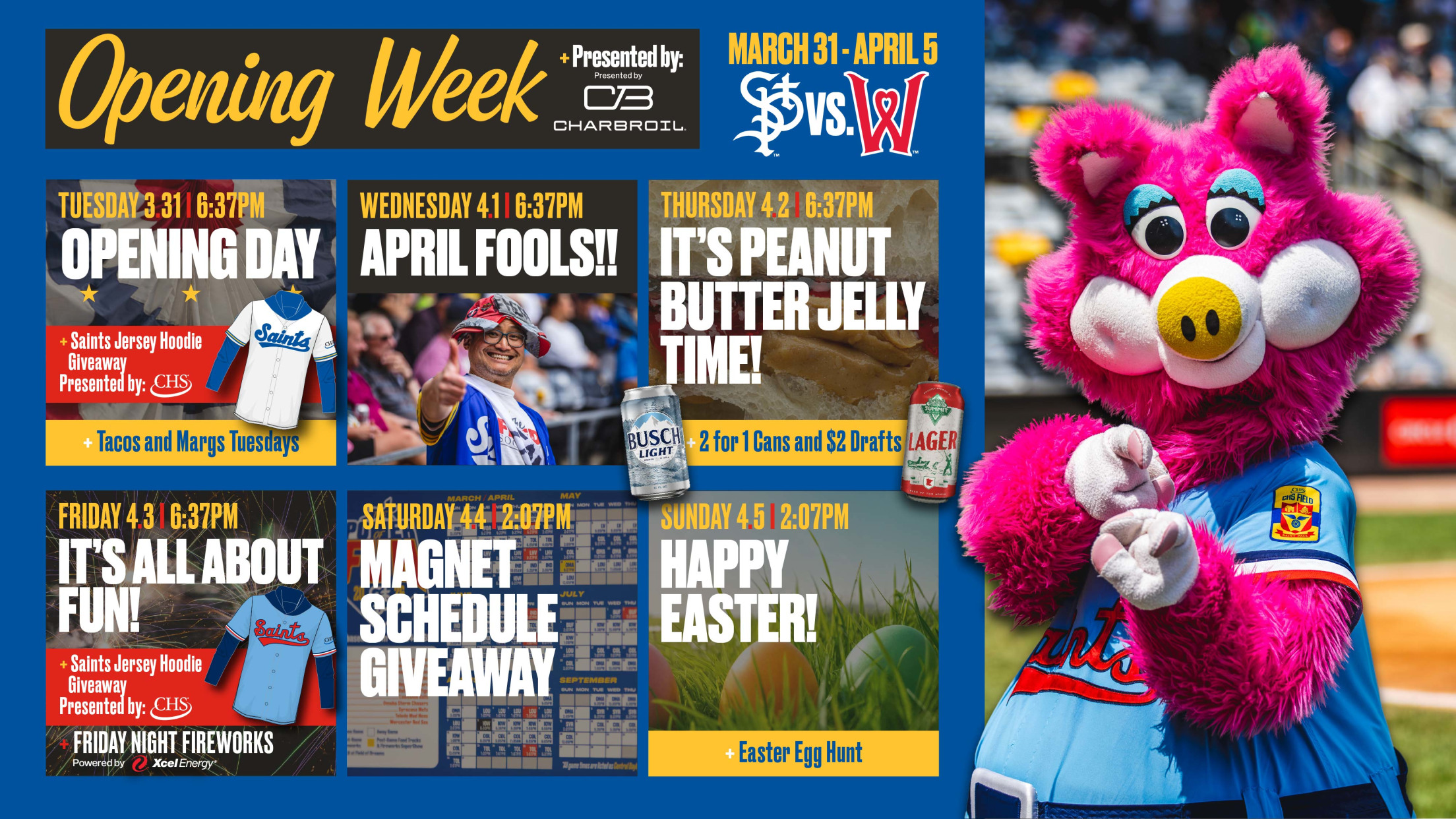 ST. PAUL, MN (March 30, 2026) - And away we go. The winter hibernation is finally over and spring has officially sprung. That can mean only one thing: St. Paul Saints Baseball is underway. We’ll keep you warm, even on the coldest of early spring nights, with our magnetic personalities. Don’t be fooled by the hilarity of these promotions because we’re not putting all our eggs in one basket during the first homestand of the season. There will be plenty of incredible ideas throughout the season, but we encourage you to get out of the house and join us at CHS Field because baseball is back during the opening homestand from March 31–April 5.