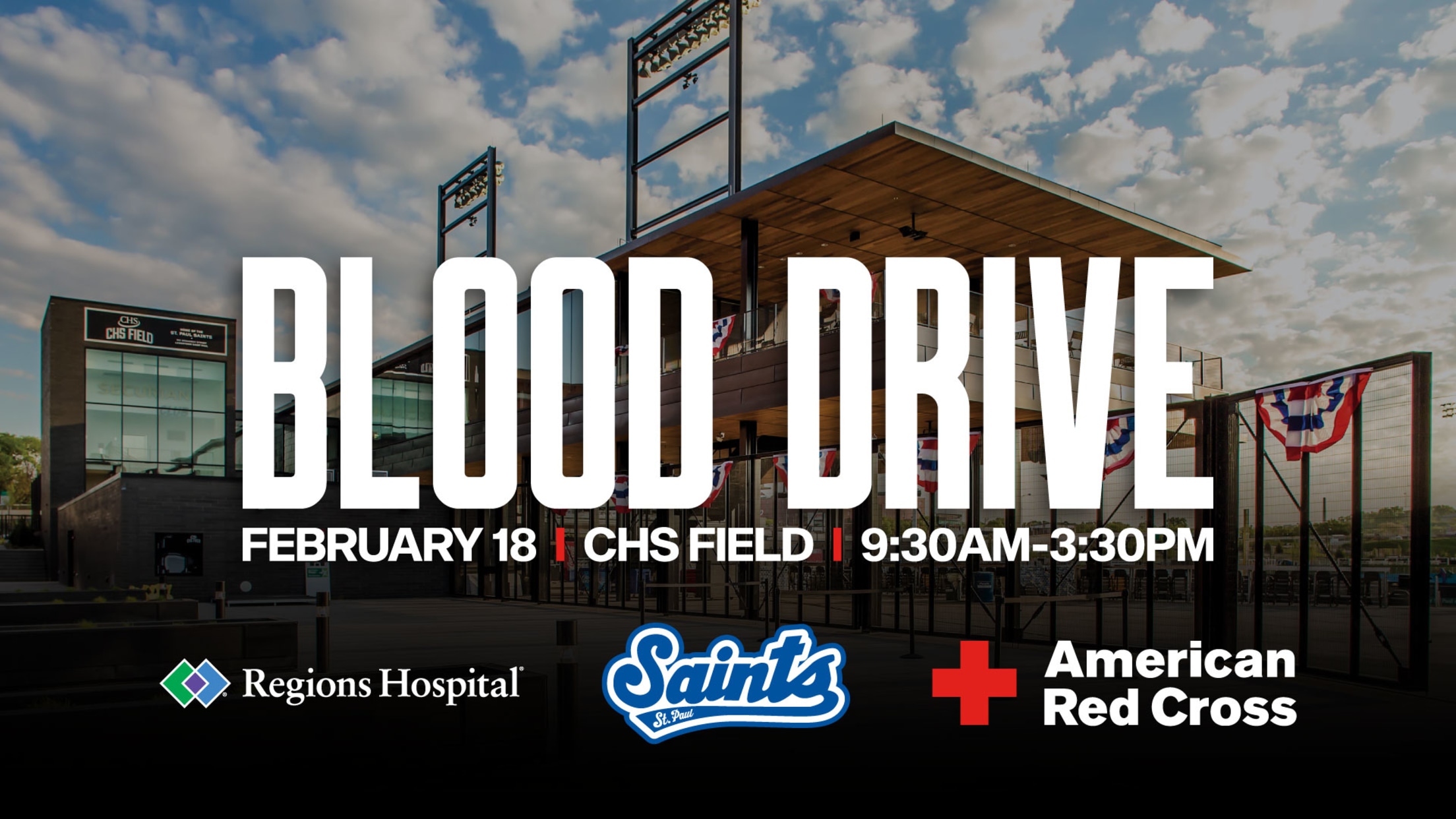 ST. PAUL, MN (February 11, 2022) - Community involvement is a staple for the St. Paul Saints beginning before they played their first game in 1993. Whether it’s off-season or in season, the Saints team up with their partners for the greater good. The American Red Cross Blood Drive, hosted by the Saints in partnership with Regions Hospital on Friday, February 18, brings three of the more recognizable names in the Twin Cities together for one worthy cause.