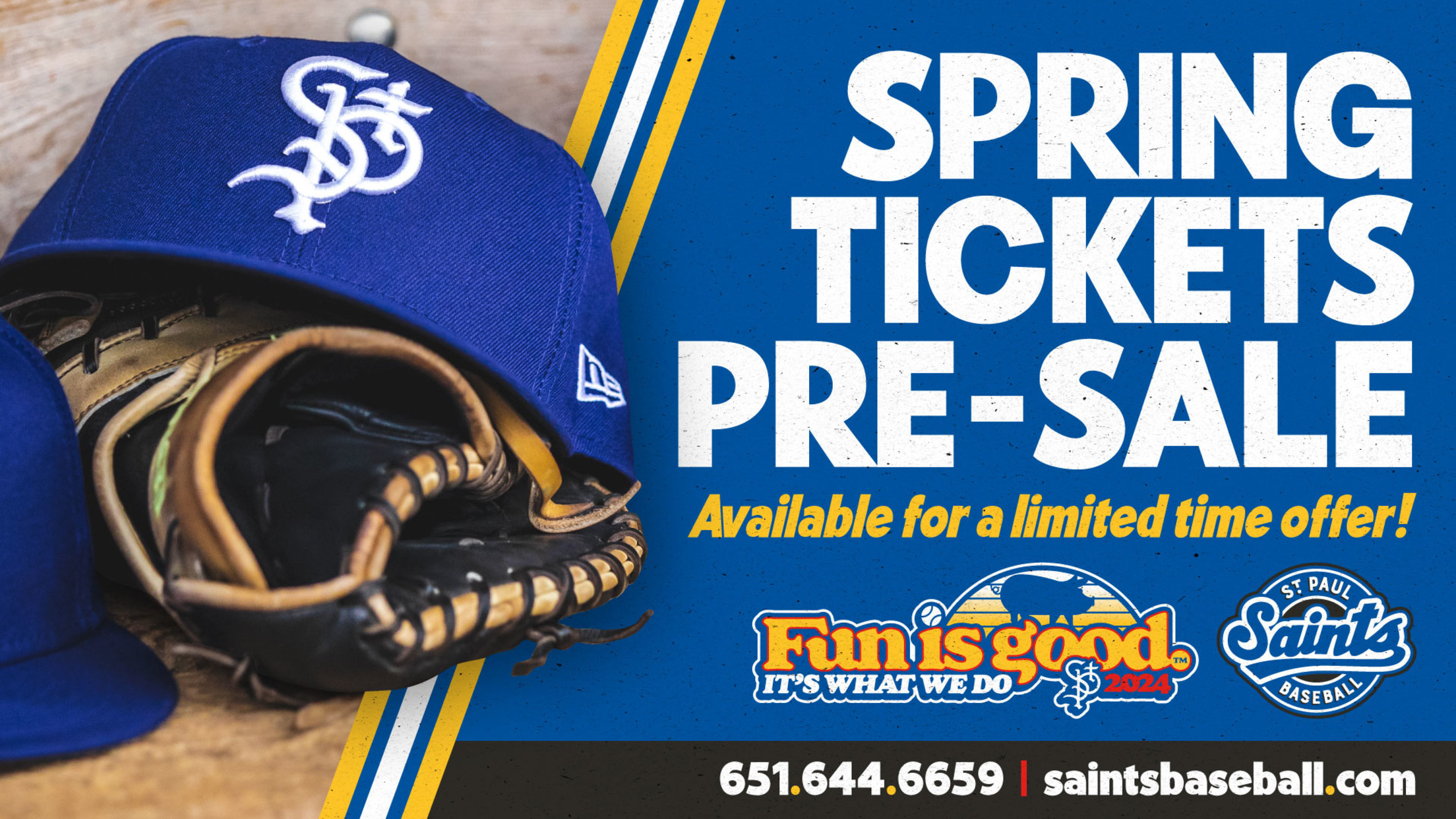 The Hearty Minnesota ticket package can be purchased by calling the Saints office beginning at 10:00 a.m. on January 19 and during Saints office hours, Monday-Friday 9:00 a.m.-5:00 p.m., at 651-644-6659 or visiting saintsbaseball.com.
