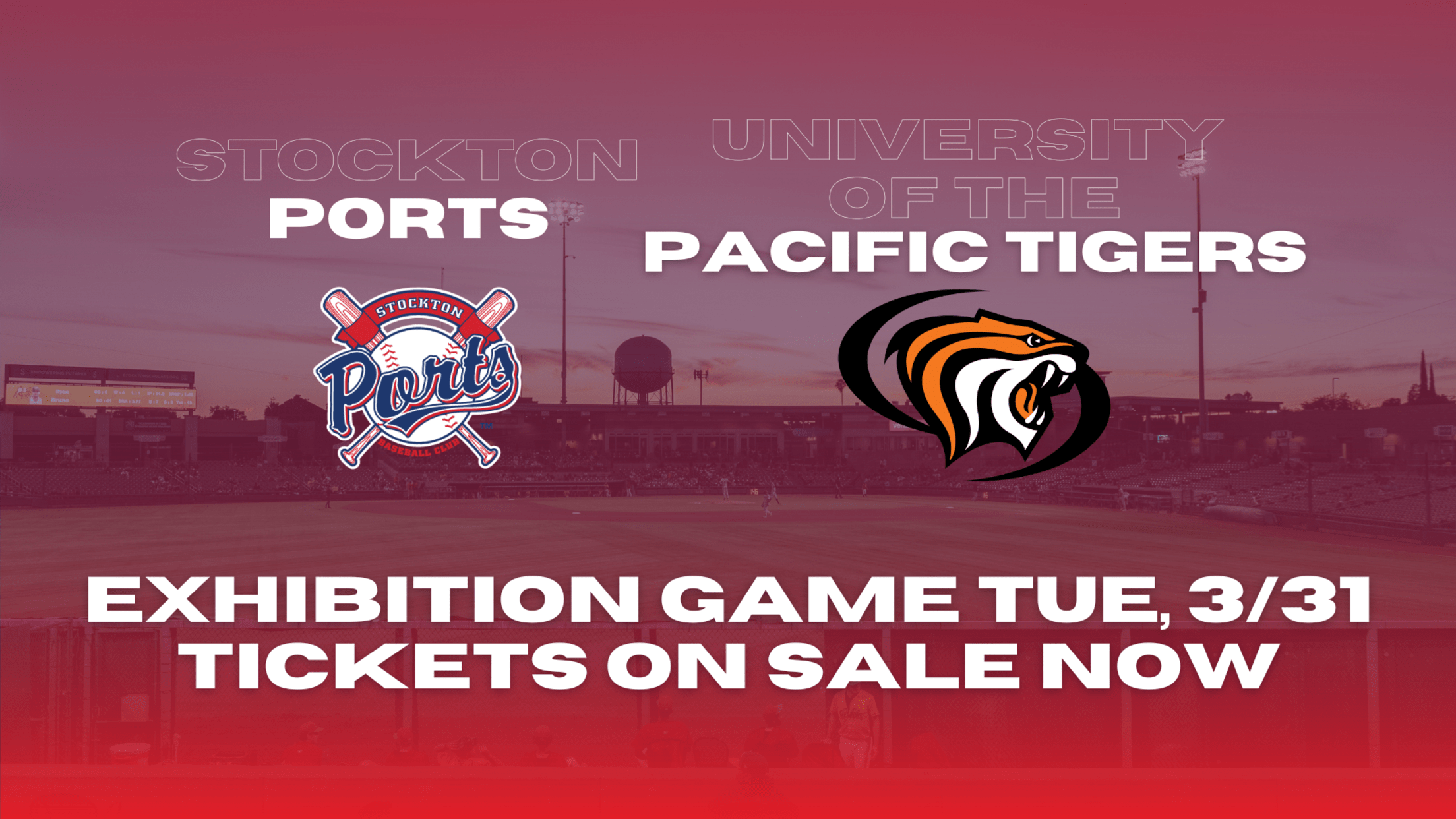 Exhibition Tickets On Sale Now Tickets are officially on sale for the Stockton Ports Exhibition Game against the University of the Pacific Tigers on Tuesday, March 31, 2026 at 7:05 PM at Banner Island Ballpark. Fans can secure seats now for just $14, with general seating in any section. Don’t