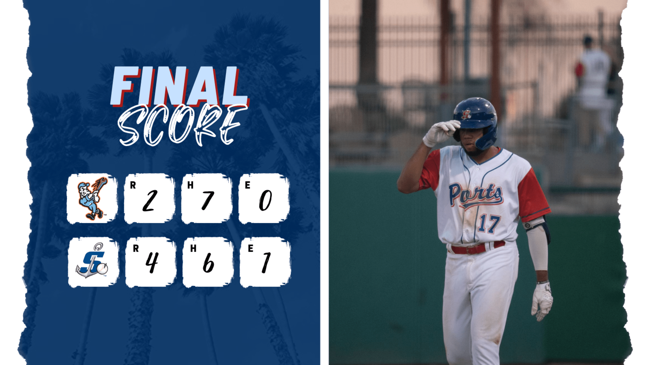 The series continues with game four on Friday night, as Grant Judkins takes the hill for the Ports, opposed by Julio Goff of the 66ers. First pitch is scheduled for 7:05 pm. The first 1,000 fans through the gates at Banner Island Ballpark will receive a Folklorico bobblehead, presented by LiUNA Local 73 Union.