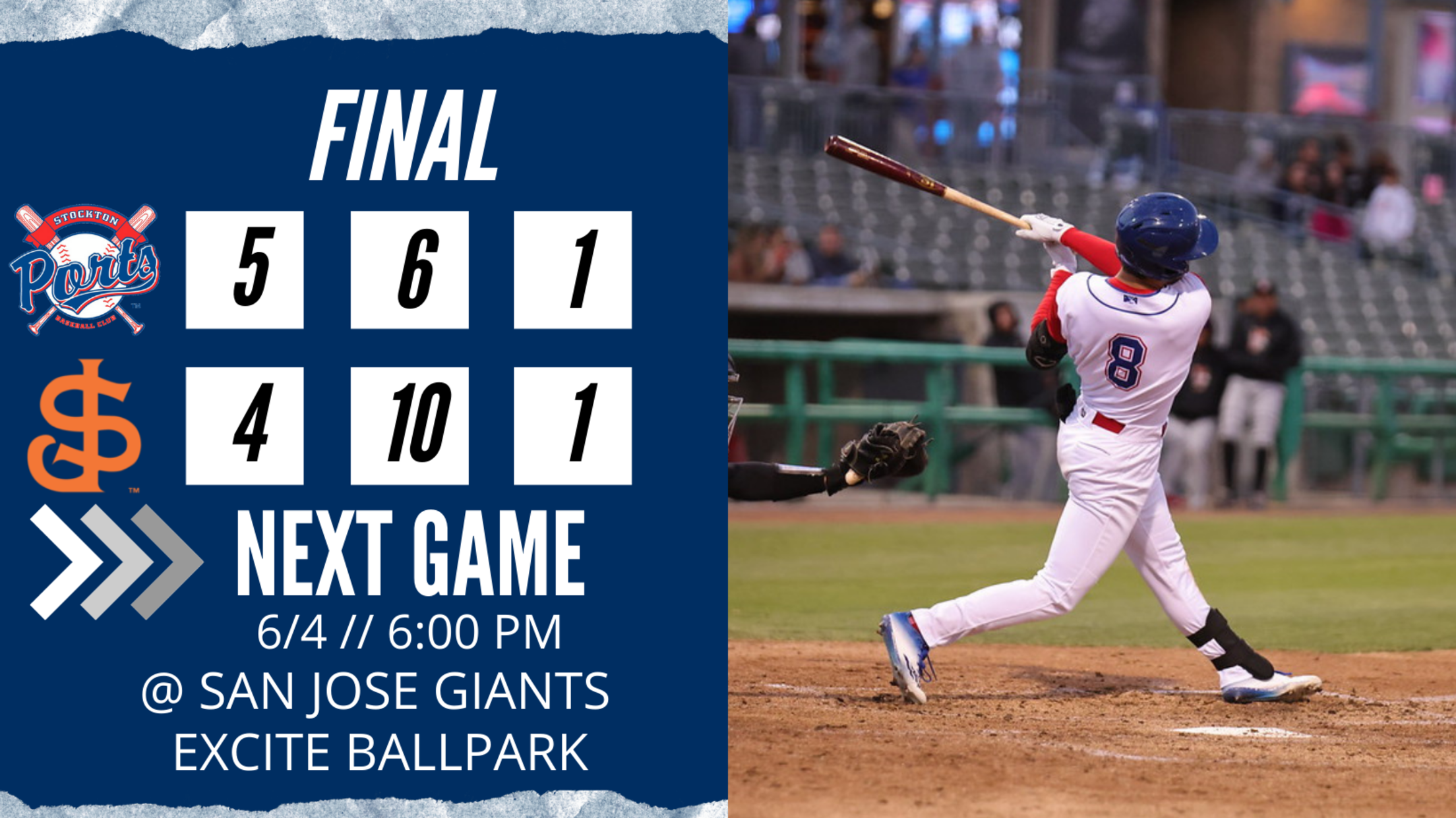 SAN JOSE, Ca. – Junior Perez scored from second base on a passed ball with two outs in the top of the 11th inning to break a 4-4 tie as the Ports beat the San Jose Giants 5-4 in extras on Friday night at Excite Ballpark. The Giants (28-21) got