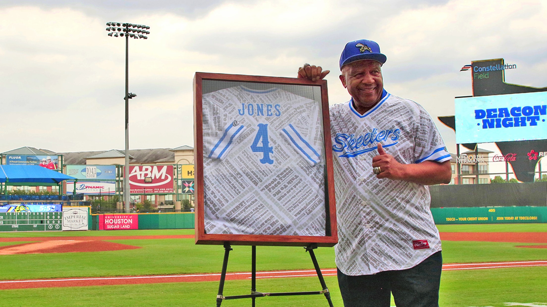 Jones was consistently out in the Fort Bend and greater Houston area scouting to see if fans had been to the ballpark. He was known to come into the Sugar Land office on a near daily basis declaring “Great day to work, can’t beat the hours!” His stories included experiences with the likes of Ted Williams, Jackie Robinson, Tony Gwynn and Mickey Mantle. For the impact he had on the Sugar Land franchise, Jones had his #4 retired by Sugar Land, the first jersey retired by the franchise, on August 4, 2019. Plans for a memorial to honor the life and legacy of Deacon are forthcoming.