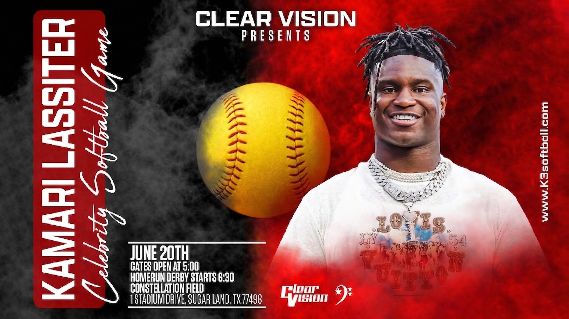 Houston Texans Pro Bowl Cornerback Kamari Lassiter, in partnership with the Sugar Land Space Cowboys and Clear Vision will host a Celebrity Softball Game and Home Run Derby on Saturday, June 20 at Constellation Field.