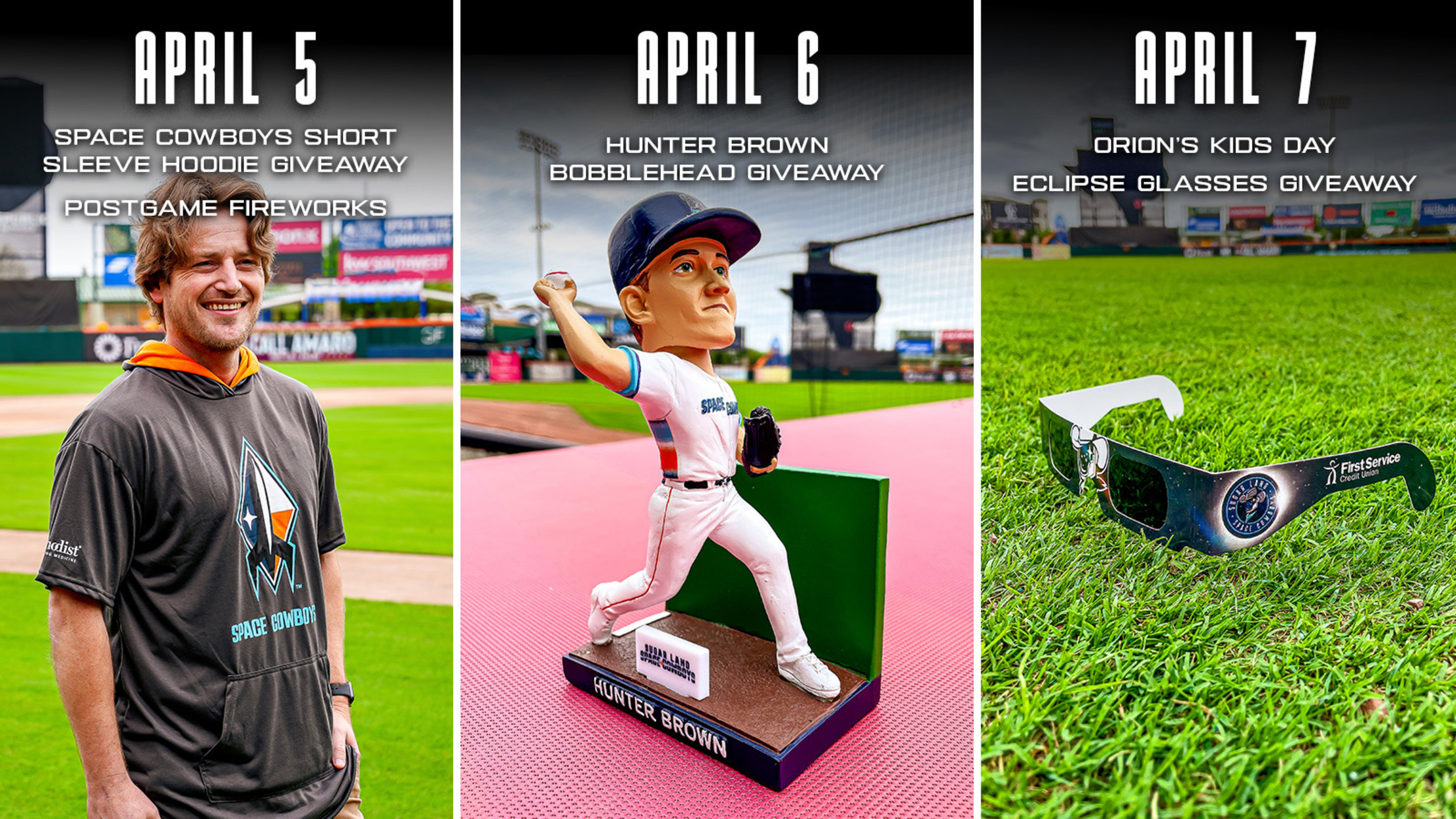 Sugar Land’s Opening Weekend presented by Constellation comes to a close on Sunday with Space Day! With the total solar eclipse coming up the following day, the first 2,000 fans will receive a pair of Eclipse Glasses presented by First Service Credit Union when gates open at 12:30 pm.