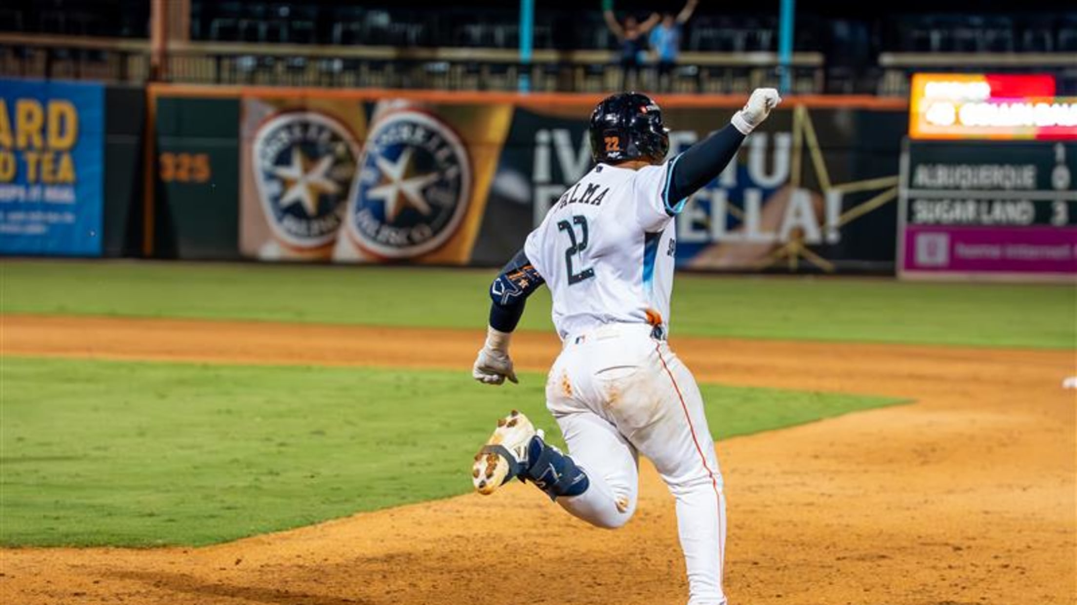 The Isotopes scored a run in the top of the ninth to take an 8-7 lead, but the Space Cowboys would not be denied in the home half of the inning. Edwin Díaz was hit by a pitch with two outs before Palma punished a 1-1 fastball and drove a two-run homer 394 feet to left as Sugar Land walked off Albuquerque, 9-8.