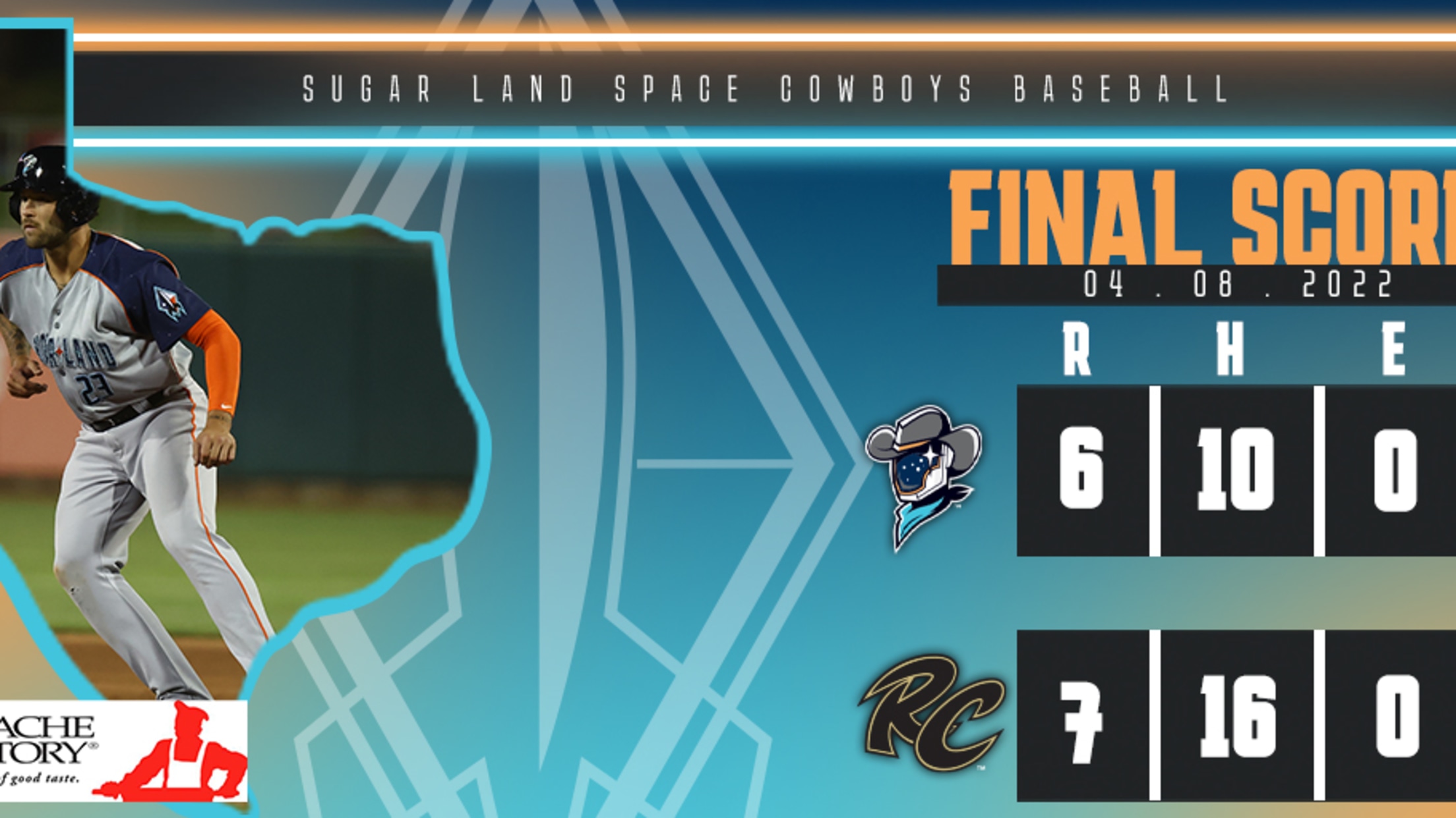 (WEST SACRAMENTO, Calif.) – The Sugar Land Space Cowboys had a six-run lead evaporate in a 7-6 extra-inning, walk-off loss to the Sacramento River Cats on Friday night at Sutter Health Park.