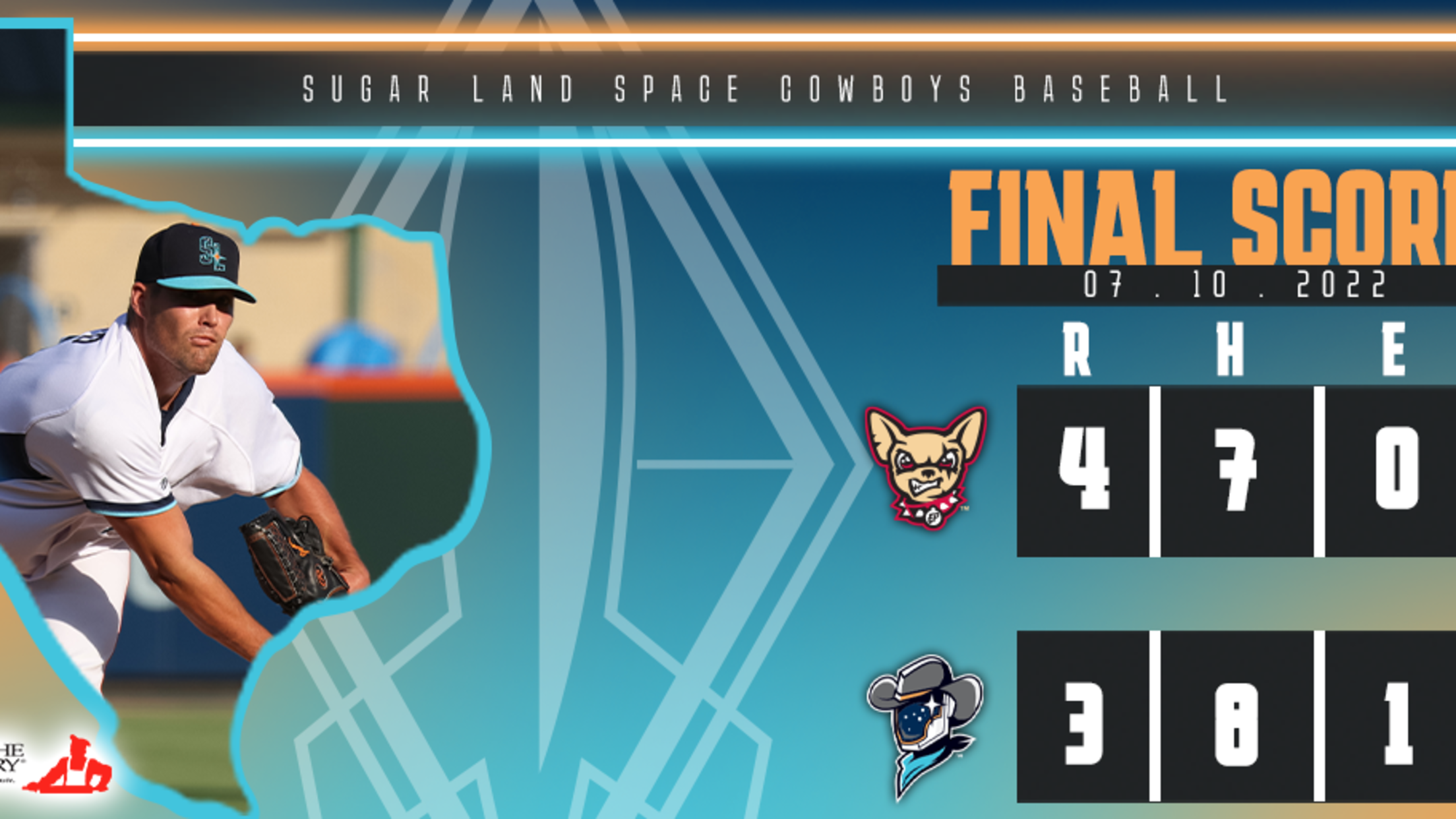 (SUGAR LAND, Texas) – The Sugar Land Space Cowboys closed out their six-game series against the El Paso Chihuahuas with a 4-3 loss Sunday night at Constellation Field.