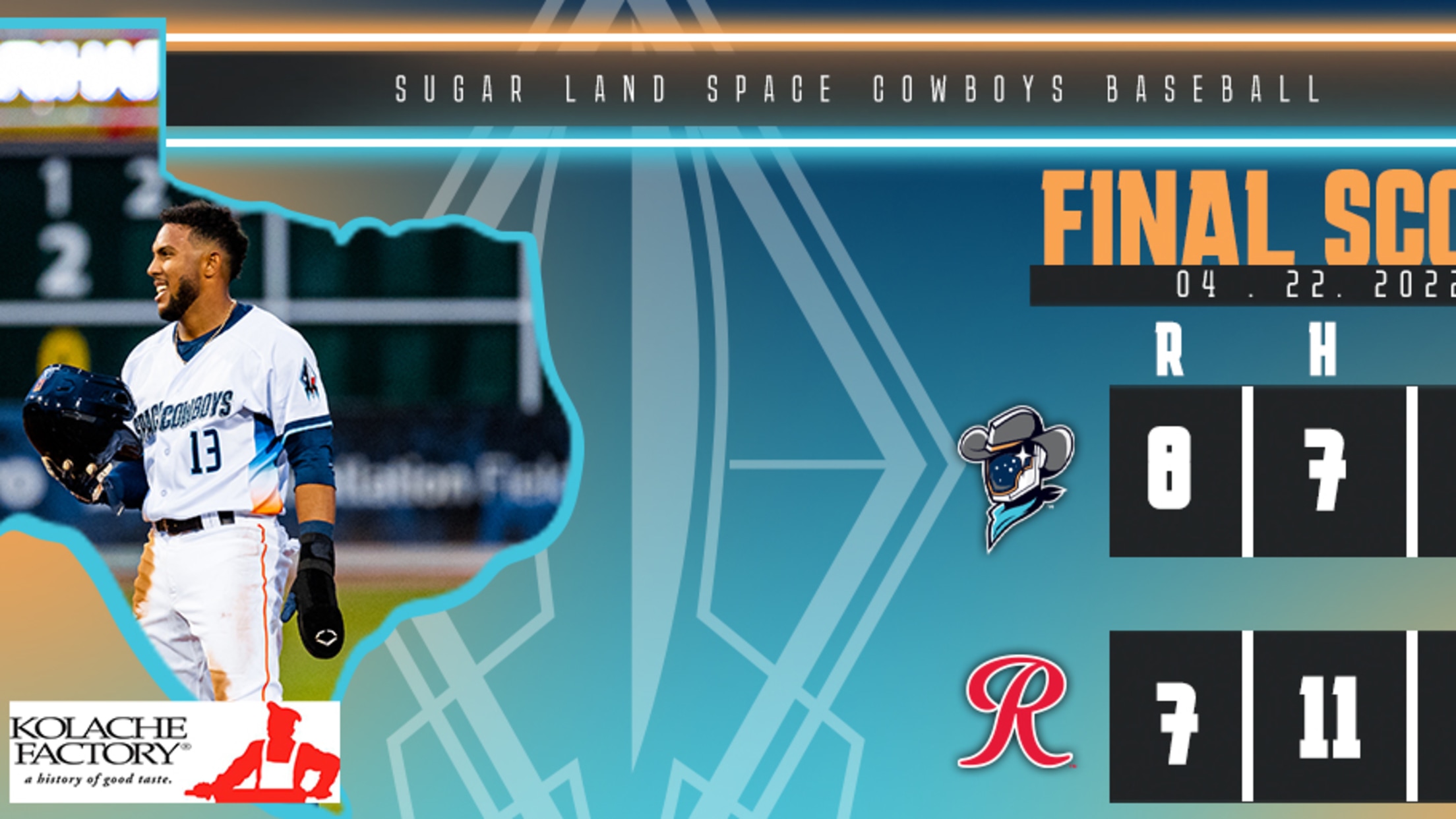 (TACOMA, Wash.) – The Sugar Land Space Cowboys chased a five-run deficit to beat the Tacoma Rainiers 8-7 in 10 innings Friday night at Cheney Stadium.