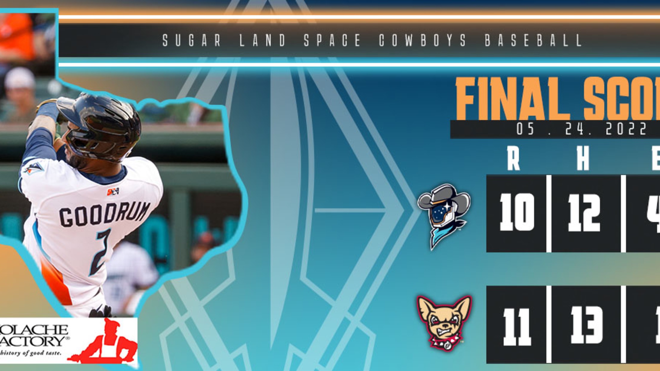 (EL PASO, Texas) – A trio of Sugar Land Space Cowboys homered Tuesday night in a 12-inning marathon contest to open a six-game road series vs. the El Paso Chihuahuas.
