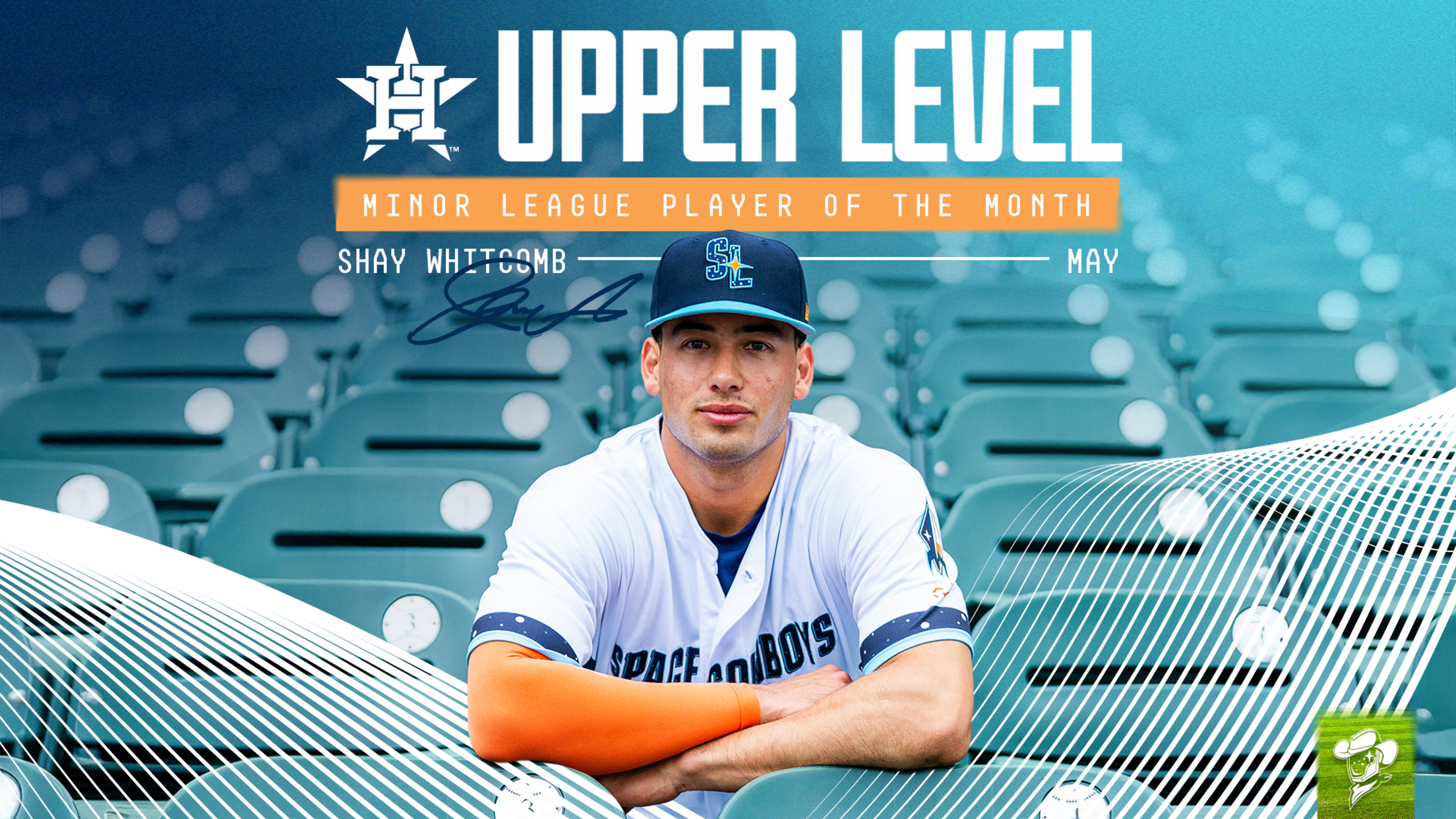 Former Sugar Land Space Cowboys infielder/outfielder Shay Whitcomb has been named the Houston Astros Upper-Level Minor League Player of the Month for May as announced by the Astros on Tuesday. It is the second consecutive month Whitcomb has been honored as the Astros top player in the upper minors. In