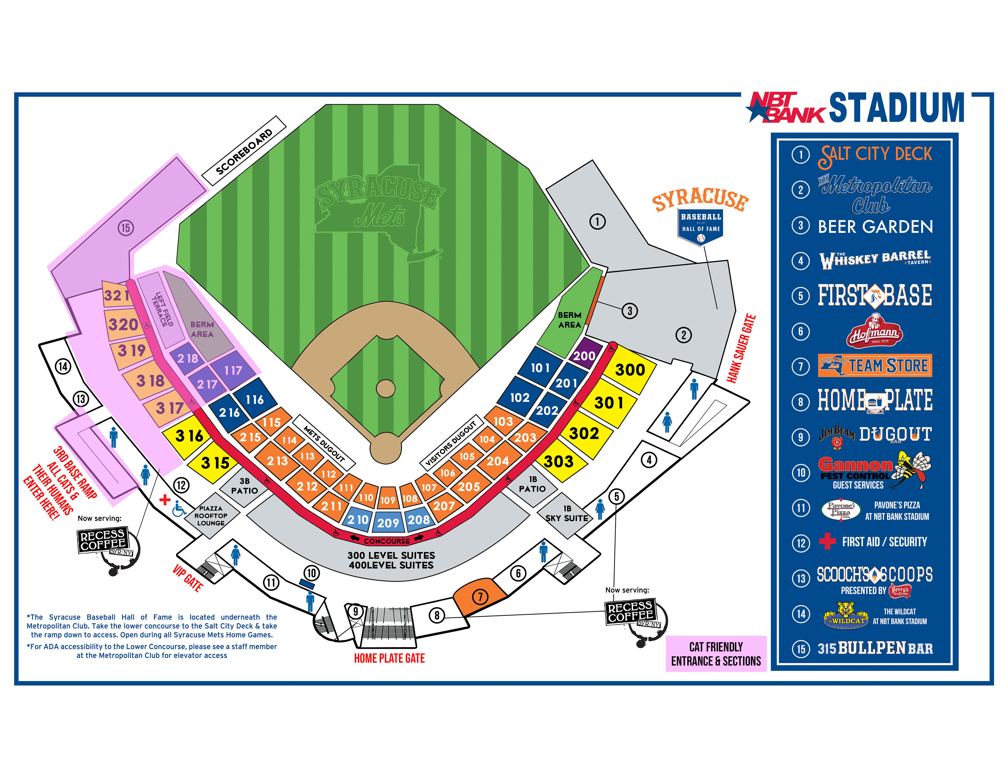 - All cats & their owners will be required to stay in the “Cat Friendly Locations” while at NBT Bank Stadium – see map for details