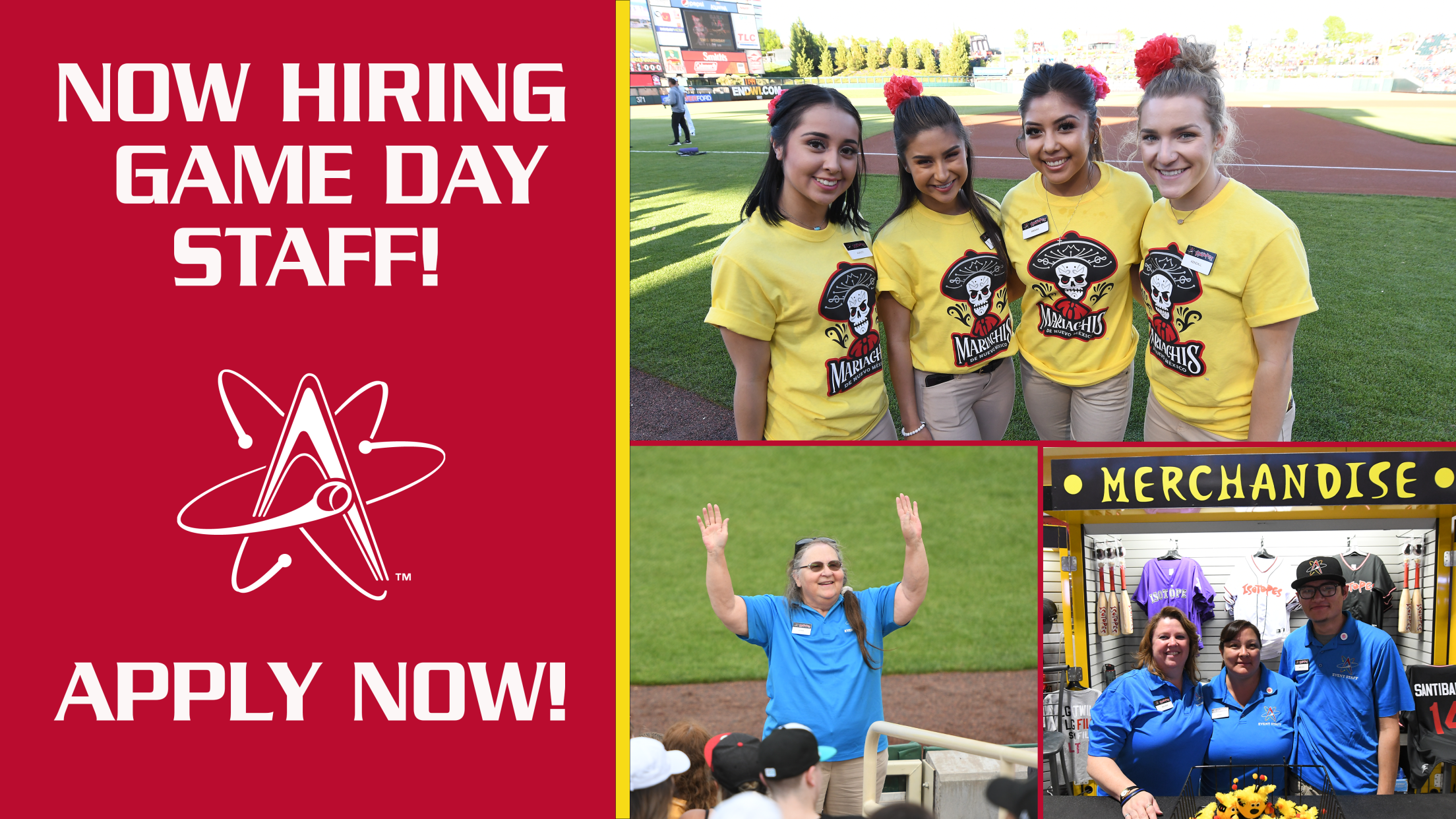 The Albuquerque Isotopes, along with Spectra Hospitality, are currently accepting applications for dozens of jobs that are available for the upcoming season. These positions are the seasonal, game day opportunities needed to operate New Mexico’s premier family entertainment venue for approximately 100 Isotopes games, soccer matches and other events at