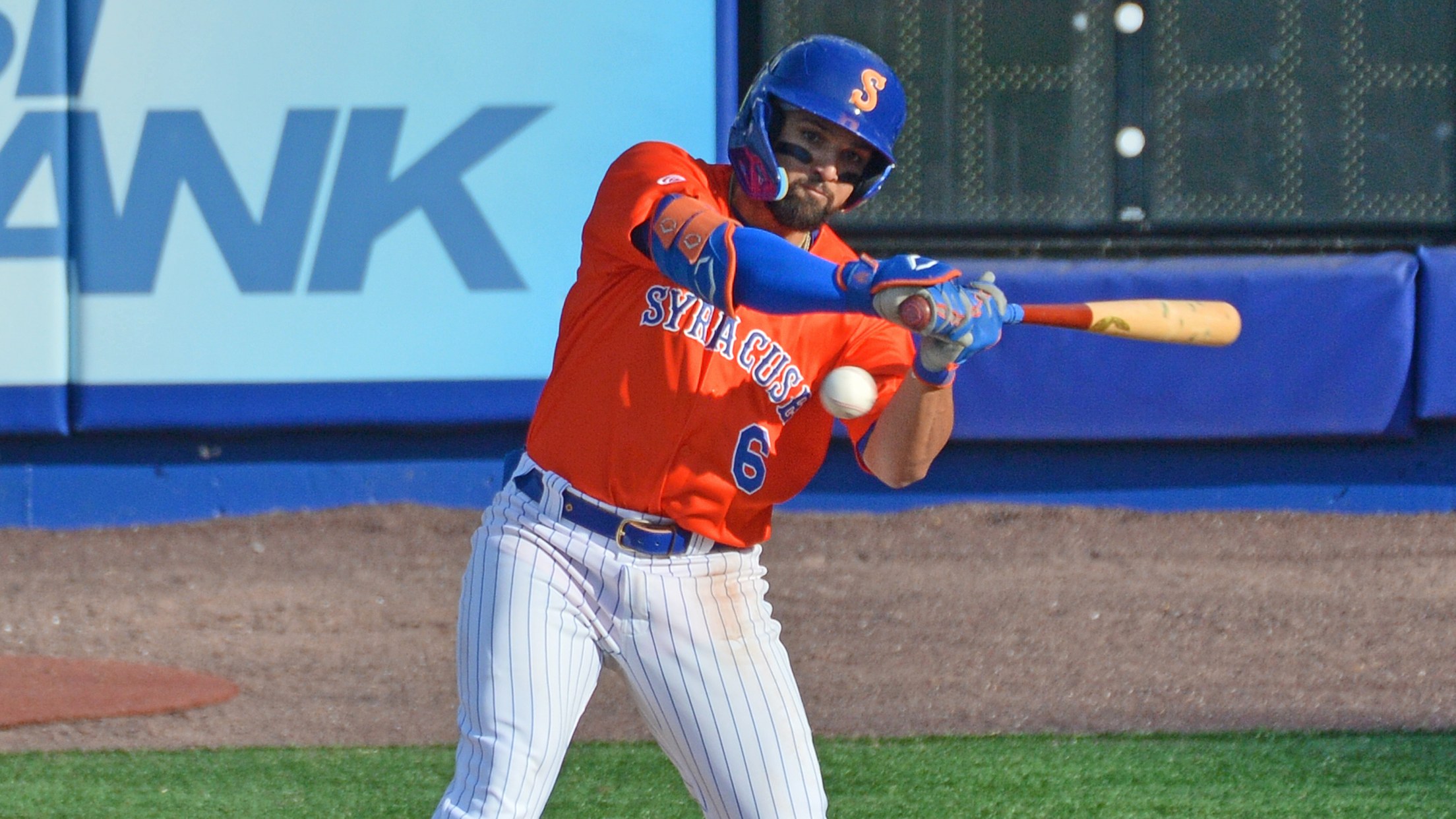 Syracuse squeezed across another run in the top of the fifth to add to its lead. Consecutive walks by Davis and Stewart to start the inning put two on base with nobody out, followed by a fielder’s choice from Araúz that put Davis on third and Araúz at first as Stewart was forced out at second base. The next batter, Locastro, hit a ground ball on the middle of the infield that looked destined to be an inning-ending double play. However, the speedy Locastro beat the throw to first base as Davis scored and increased the Mets lead to 4-1.