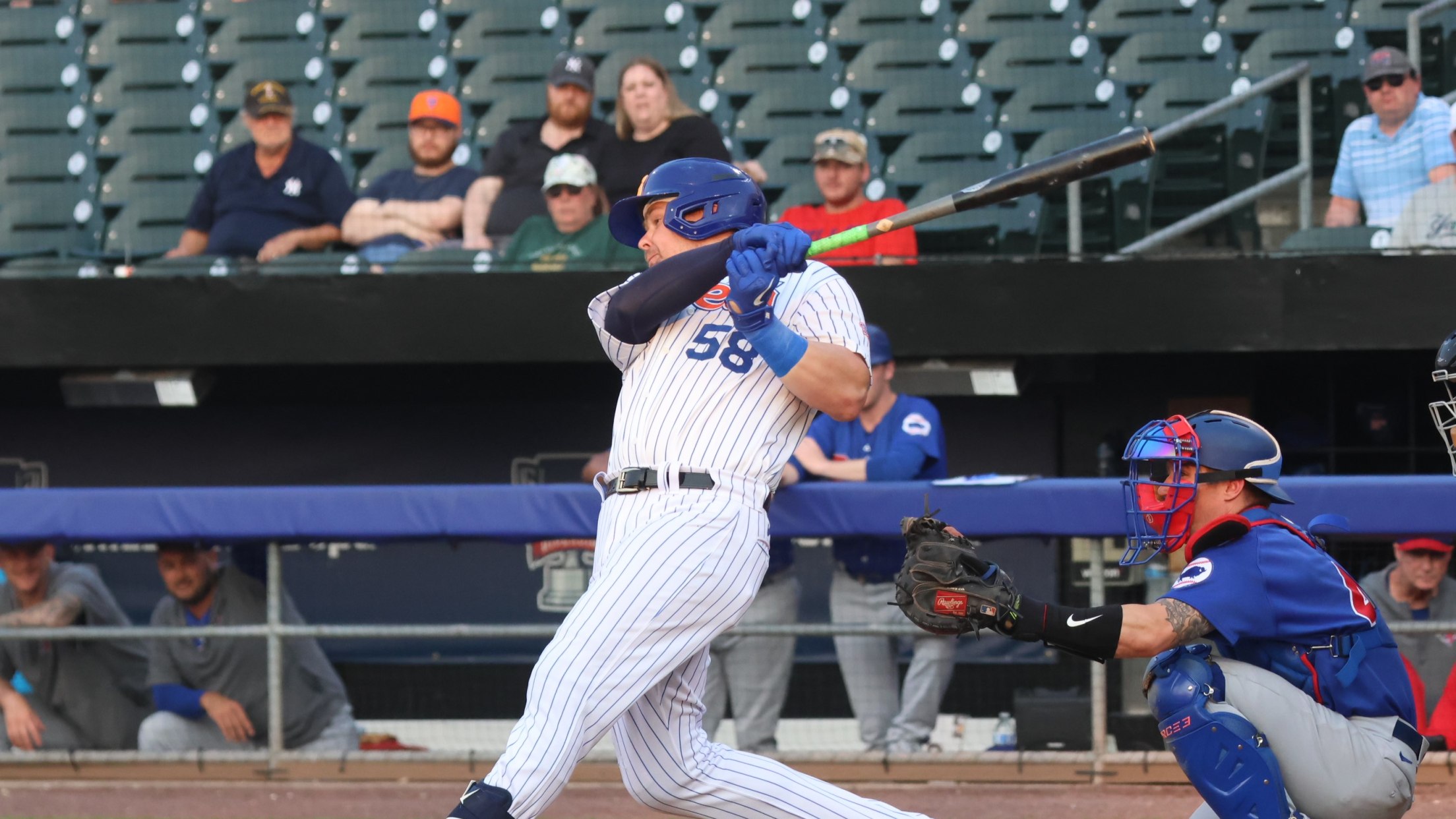 The Mets scored twice in the top of the sixth inning both with two outs. First, with runners at first and third, Tomás Nido singled home a run for a 3-1 Syracuse edge. Then, two batters later, Rafael Ortega collected an RBI single for a 4-1 Mets advantage.