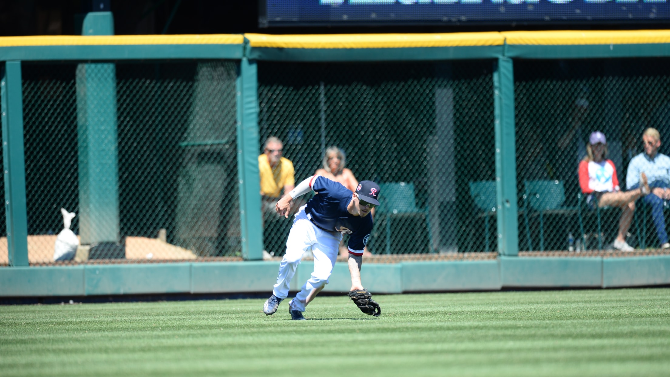 Outfielder Ian Miller fields a ball on July 24, 2017 at Cheney Stadium. (Jeff Halstead)