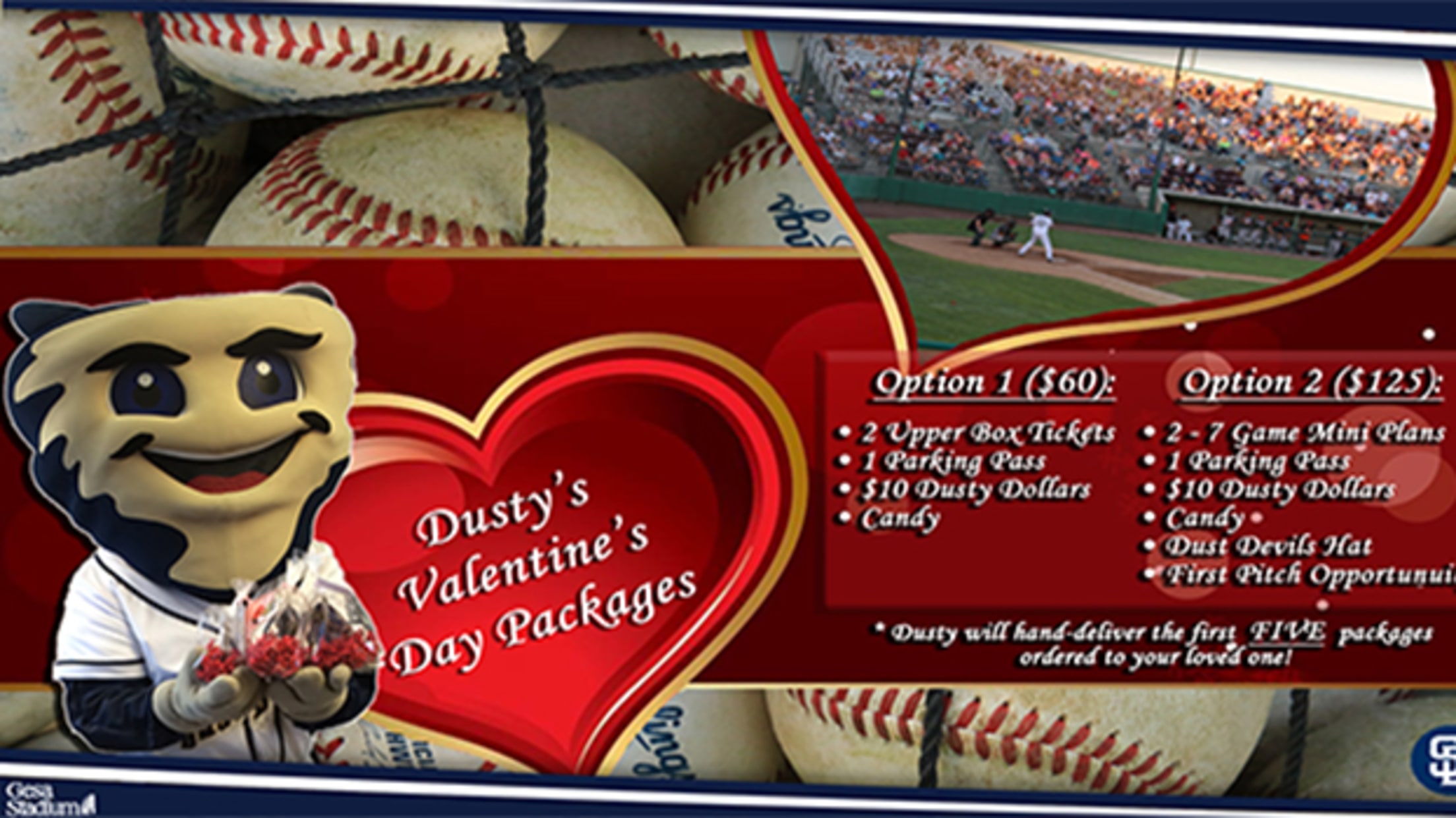 Give your sweetheart the gift of baseball this Valentine's Day, as the Dust Devils are offering two separate Valentine's Day packages for $60 & $125!