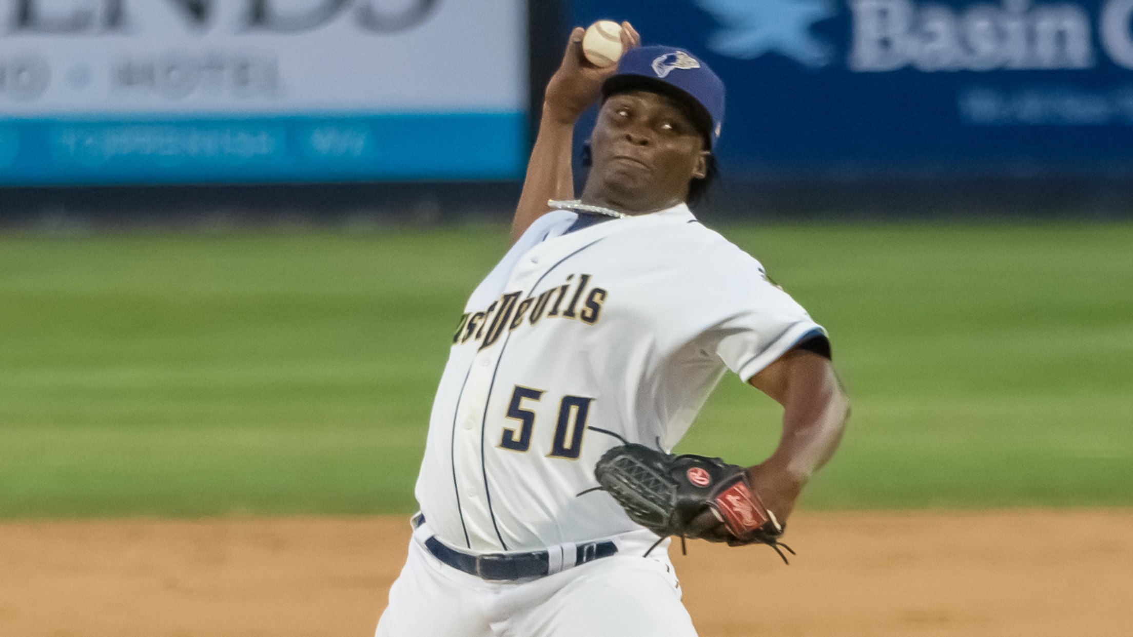 Starter Jorge Marcheco and three relievers from the Tri-City Dust Devils (15-22 2H) bullpen shut out the league-leading Spokane Indians (25-12 2H) Tuesday night, backing up a pair of midgame unearned runs for a 2-0 win at Gesa Stadium that opened a six-game series. Marcheco, innings and pitch limited since
