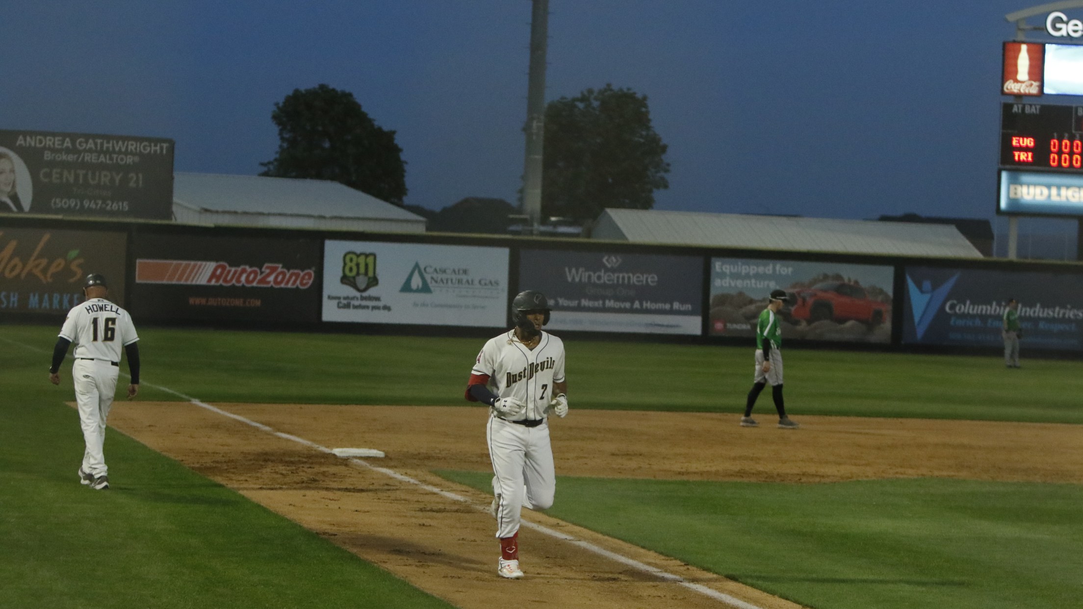 A night after the home nine put on a bunting masterclass in a walk-off win, the Tri-City Dust Devils (15-15) played a late game of longball to come back from a 4-0 deficit and down the Eugene Emeralds (16-14) Friday night by a score of 6-5 at Gesa Stadium. Back-to-back