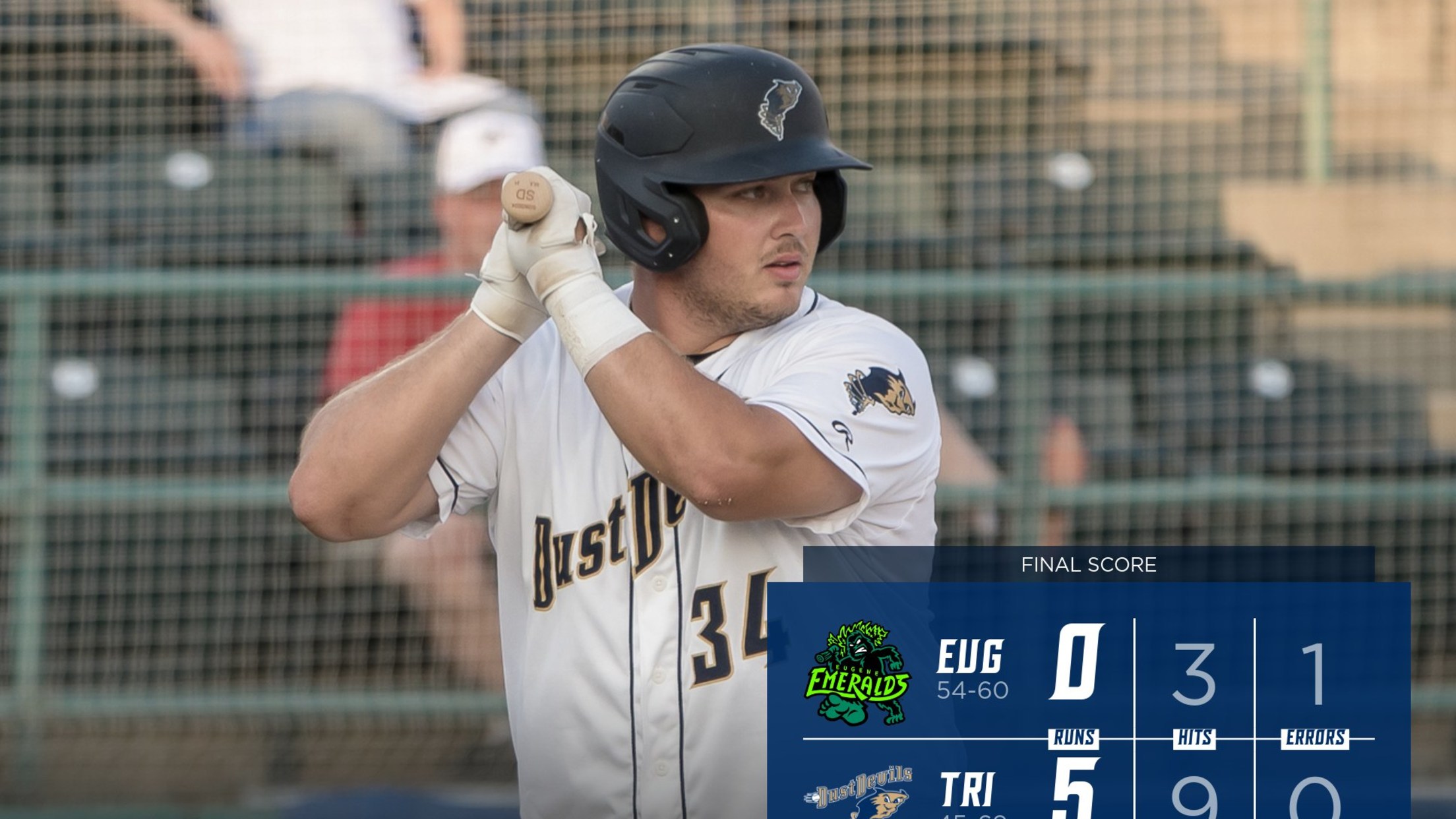 Game two of the series takes place at 7:05 p.m. Wednesday night at Gesa Stadium, where it will be Less Likes, More Love Night presented by Snapchat. Right-hander Ryan Costeiu (1-3, 2.29 ERA) starts for the Dust Devils while the Emeralds send left-hander Cesar Perdomo (1-5, 5.11 ERA) to the mound.