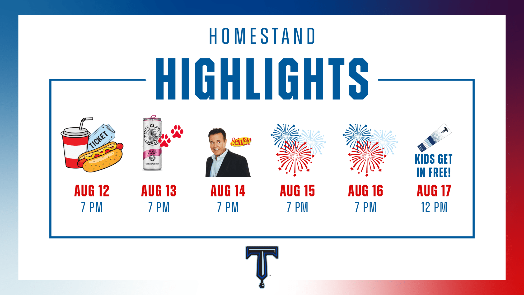 Tuesday, August 12 First Pitch at 7:00 p.m. / Gates Open at 6:00 p.m.