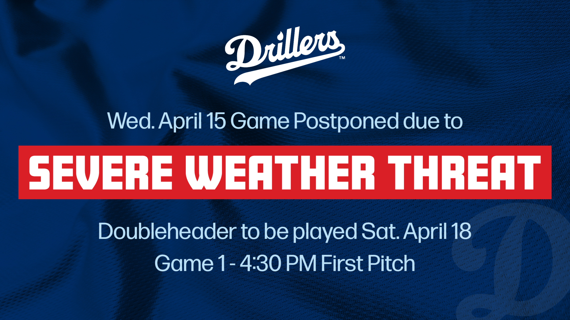 The Drillers and Travelers will now resume their six-game series with a single game on Thursday night and a first pitch scheduled for 7:00 p.m.