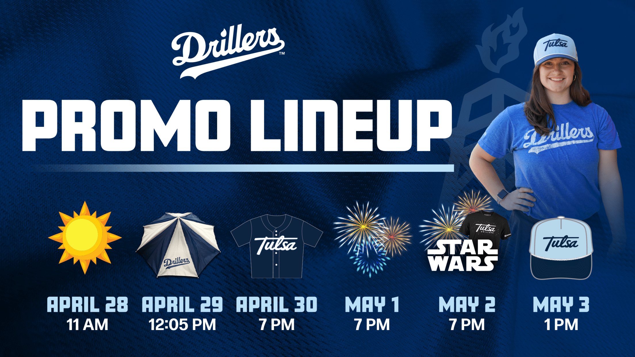 The afternoon game on Wednesday, April 29 will feature a Drillers Umbrella Hat giveaway to the first 500 fans. That promotion will be followed by a Tulsa Connect Jersey giveaway to the first 1,000 fans on Thursday, April 30. That game is also a FOX23 Thirsty Thursday with $3 souvenir sodas and $3 Bud Lights and Busch Lights. Fans can also purchase Celsius cans for just $4 each. Ticket upgrades are also available that will allow fans to purchase $1 beers.