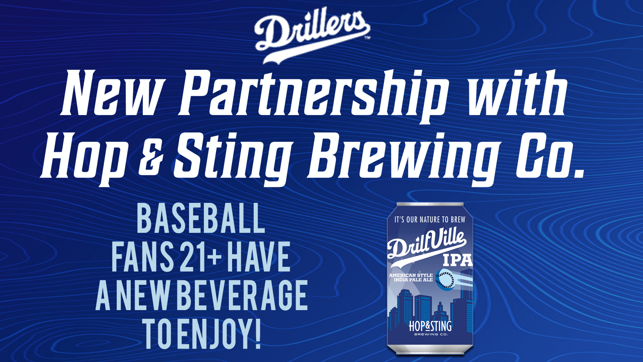 “Hop and Sting Brewing Company is ecstatic to announce the release of our latest beer, DrillVille IPA, in partnership with the Tulsa Drillers,” said Hop and Sting Co-Founder Jon Powell. “As huge baseball fans, the opportunity to partner with a great organization like the Drillers was one we couldn't pass up. We've fallen in love with Tulsa over the past few years and are proud to offer this great beer to the Tulsa community."
