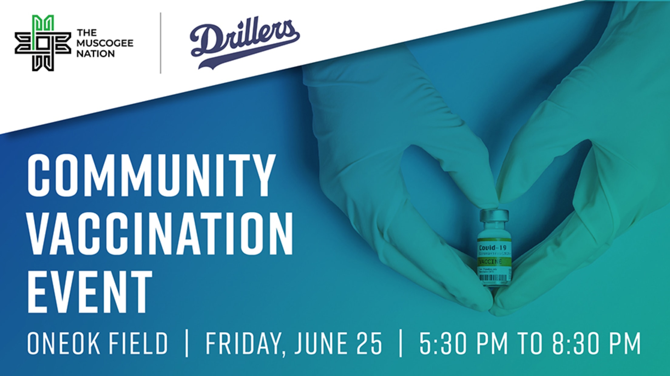 The Muscogee Nation Department of Health, in partnership with the Tulsa Drillers, will be offering free COVID-19 vaccinations at ONEOK Field prior to and during the Drillers game on Friday, June 25. The vaccinations are available for everyone who is interested in getting vaccinated.