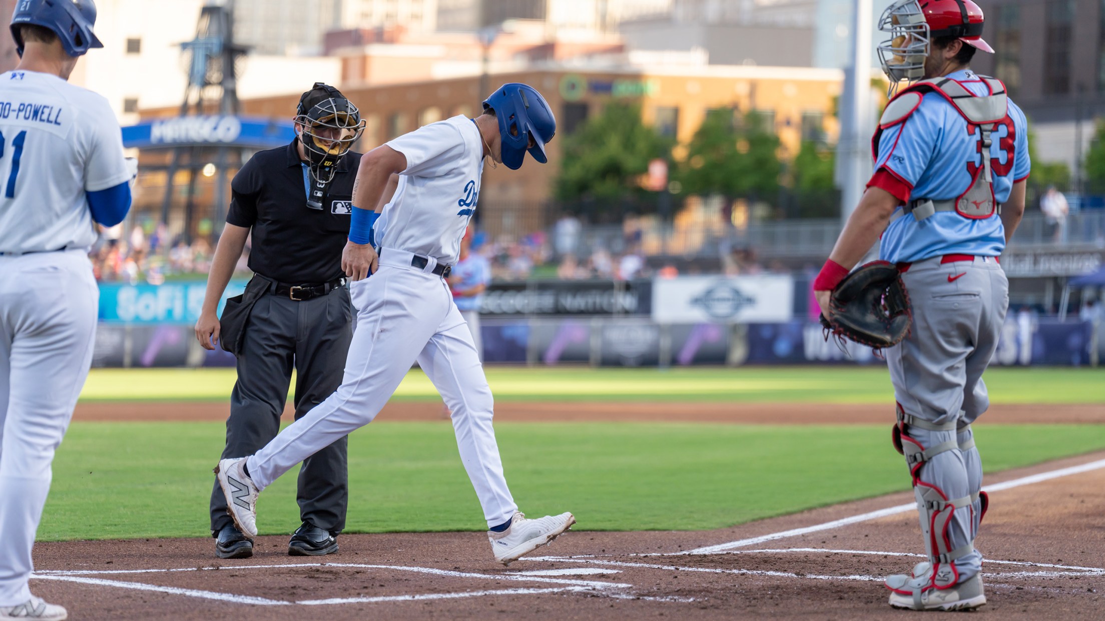 Alex Freeland touches home with the first run of the game in Tulsa's 8-1 win over Springfield Tuesday night at ONEOK Field. (Tim Campbell)