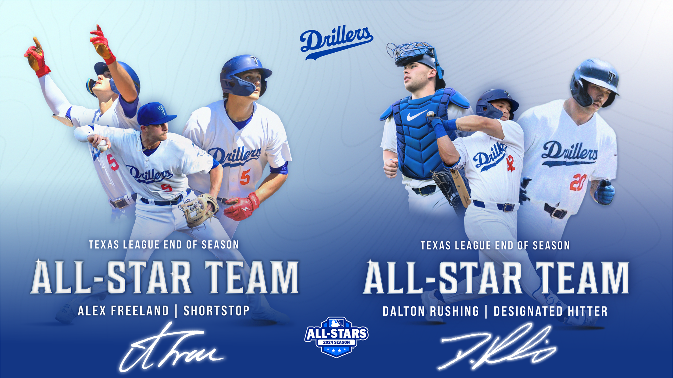 Dalton Rushing and Alex Freeland both spent part of the 2024 season in a Tulsa Drillers uniform, and the duo made a big impact before being transferred to Triple A by the Los Angeles Dodgers on August 6. Today, they were both recognized for their performances with the Drillers by being named to the Texas League All-Star Team. In addition, Rushing was named the Top MLB Prospect from the TL.