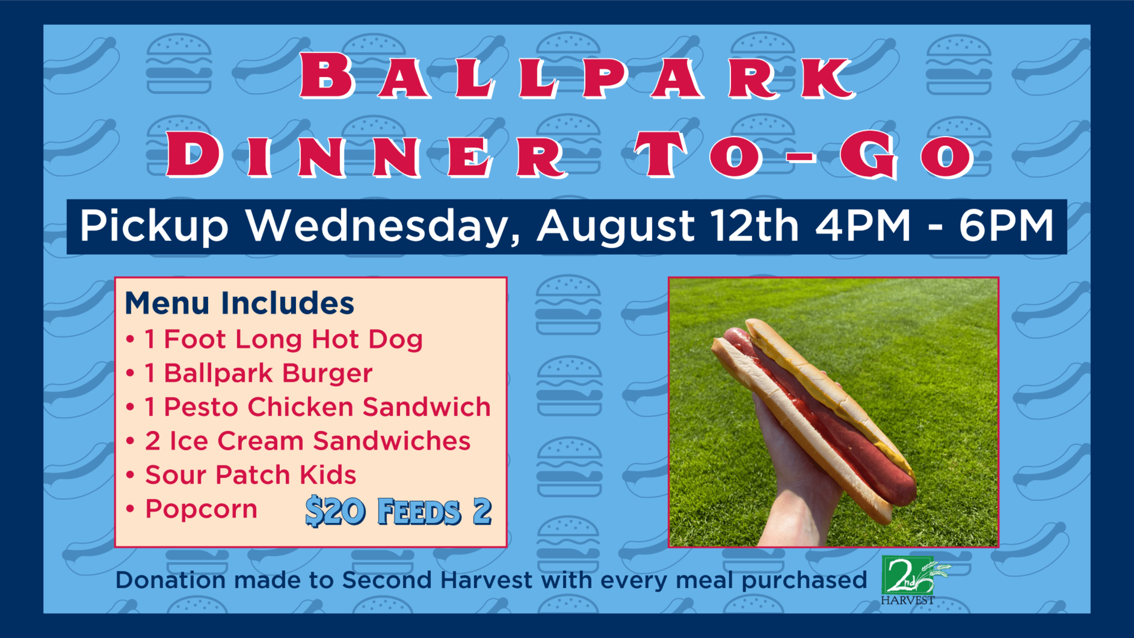 For every meal purchased, the Spokane Indians will make a monetary donation to Second Harvest. Second Harvest Distributes over 2 million pounds of free food each month to help people in 26 counties in Eastern Washington and North Idaho. While placing orders for the family meals online, fans will have the opportunity to make additional donations to Second Harvest.