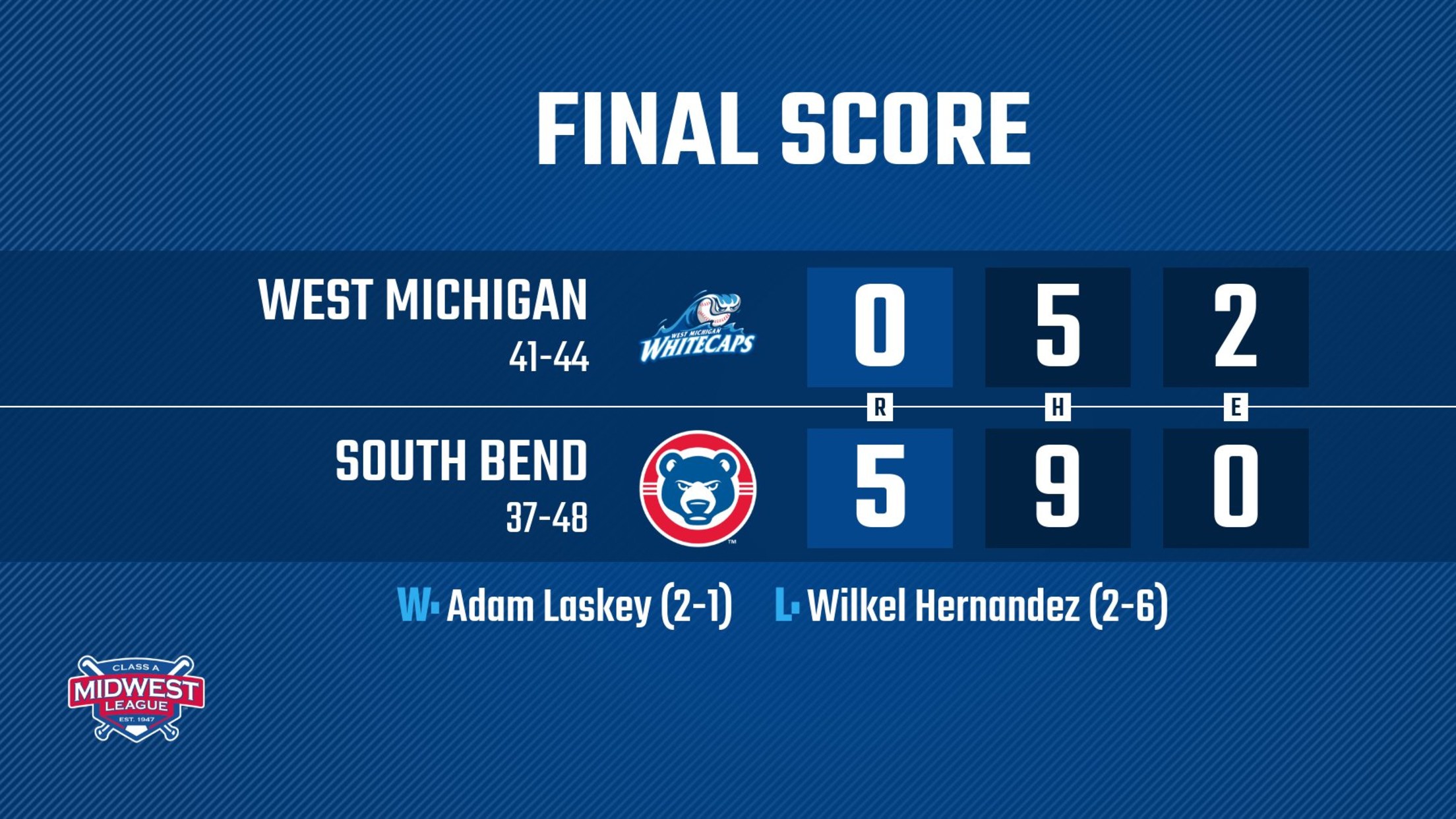 SOUTH BEND, IN – The West Michigan Whitecaps bats went silent, spoiling a solid performance from pitcher Wilkel Hernandez on Wednesday afternoon as part of a 5-0 shutout loss to the South Bend Cubs at Four Winds Field. West Michigan’s offense was held to just five hits and hasn’t scored