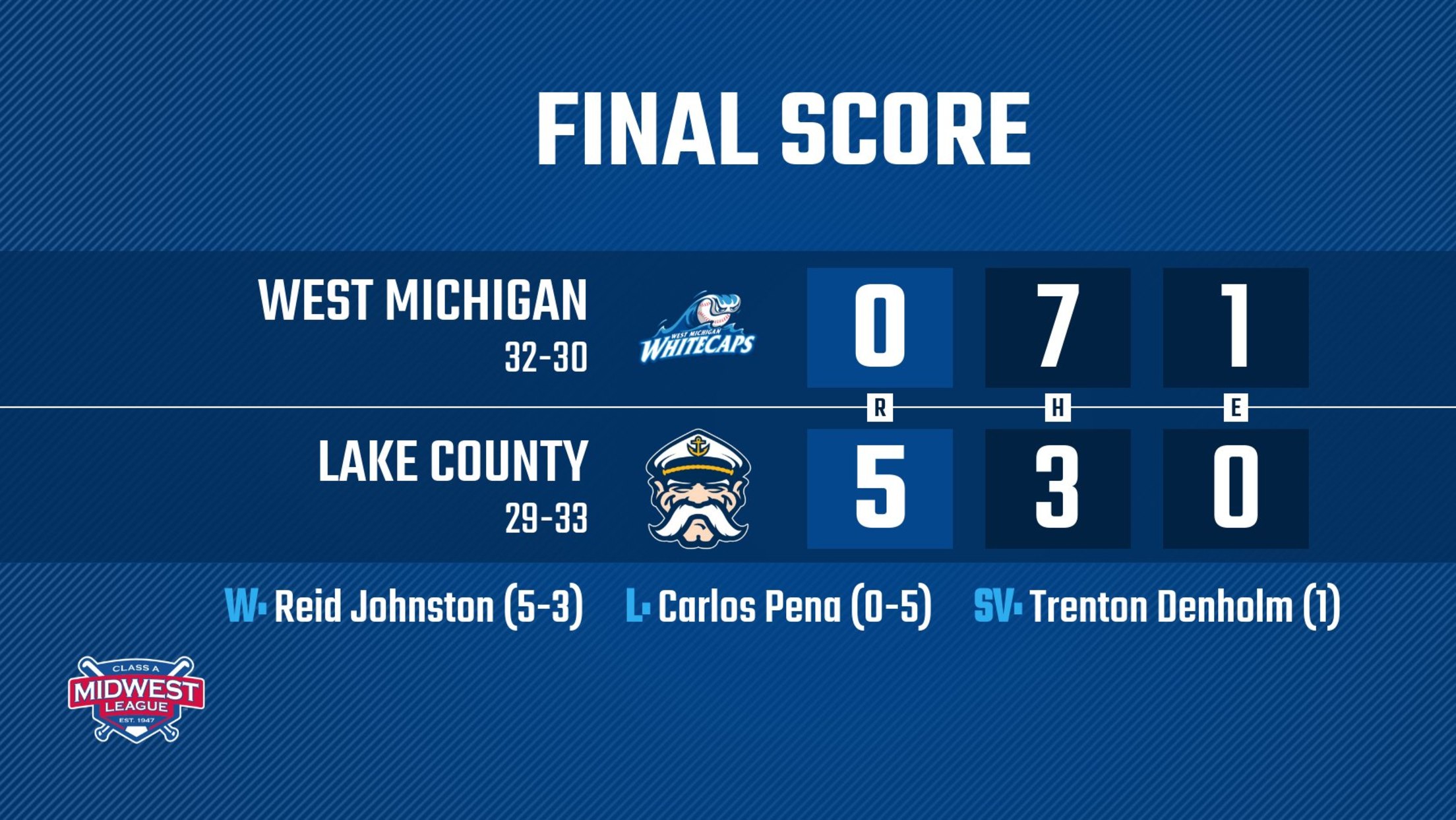 EASTLAKE, OH – The West Michigan Whitecaps were forced to settle for a split of their six-game series by taking a 5-0 loss to the Lake County Captains on Sunday at Classic Park. The Whitecaps, who held Lake County without a run in two of the first three games of