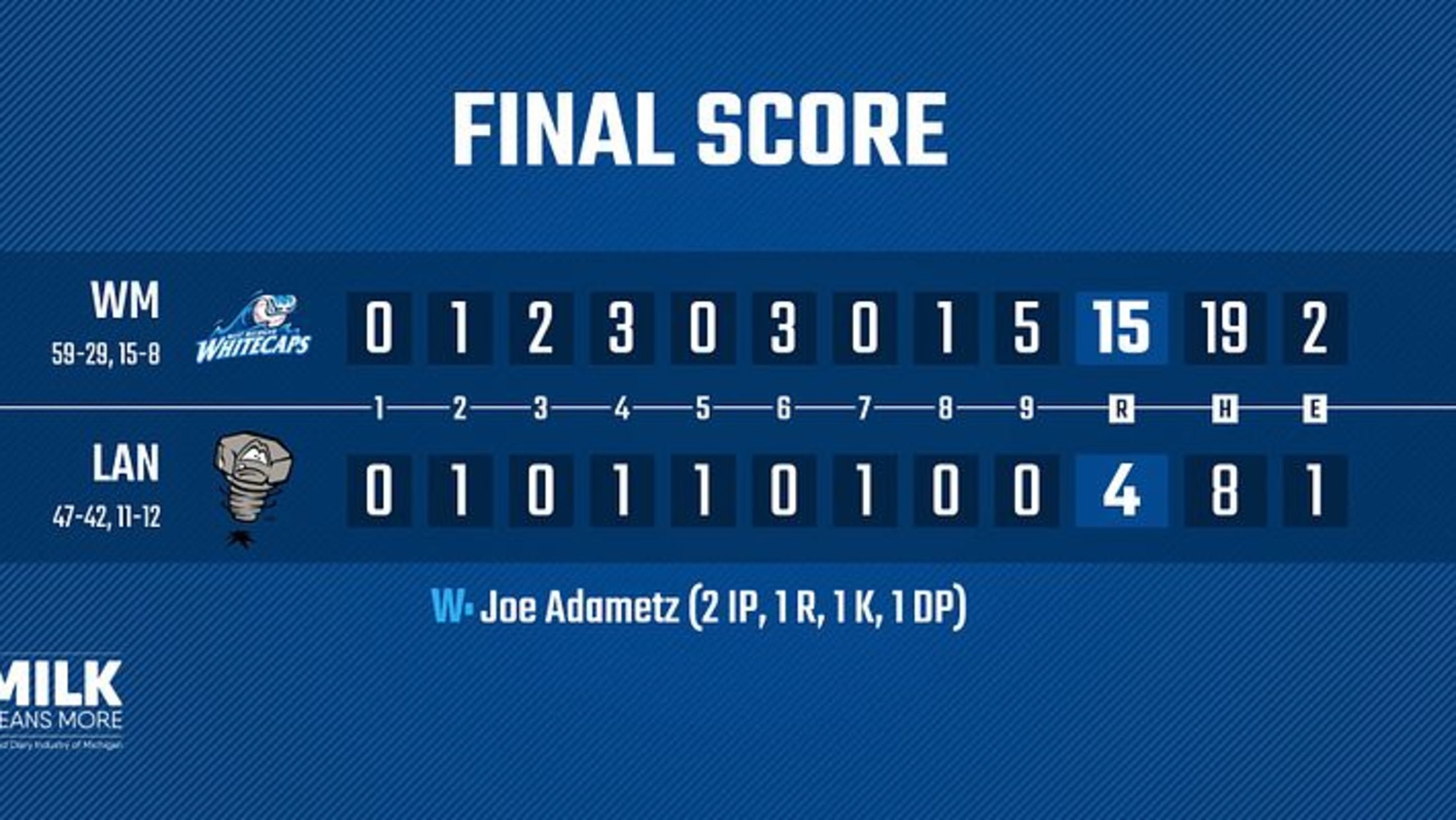 LANSING, MI – The West Michigan Whitecaps enjoyed a double-digit scoring performance for the 18th time this season, breaking the franchise record with games scoring 10 runs or more as part of a 15-4 win over the Lansing Lugnuts in front of 5,979 fans on Saturday night at Jackson Field.