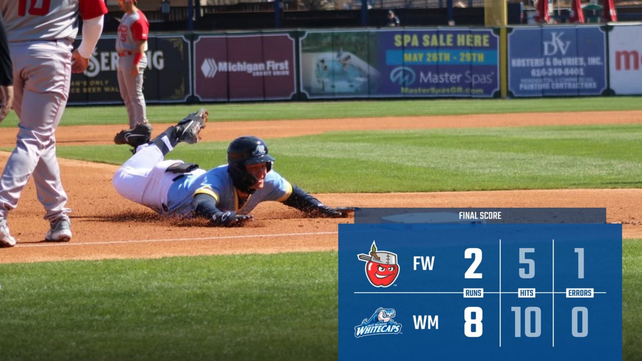 COMSTOCK PARK, MI - The West Michigan Whitecaps used extra-base power and solid pitching to roll past the Fort Wayne TinCaps 8-2 on Friday afternoon at LMCU Ballpark.