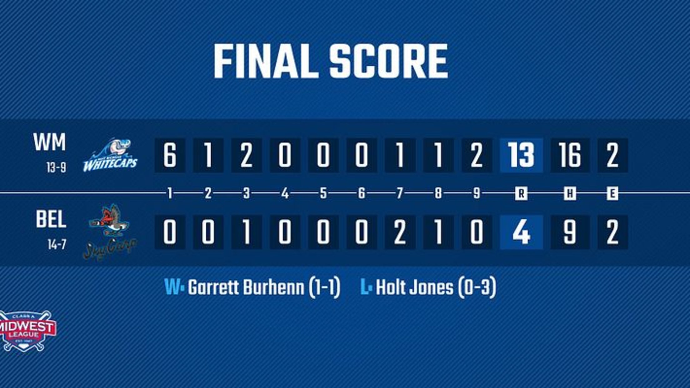 BELOIT, WI - The West Michigan Whitecaps got out to a nine-run lead and coasted to a 13-4 win over the first-place Beloit Sky Carp on Tuesday night at ABC Supply Stadium.