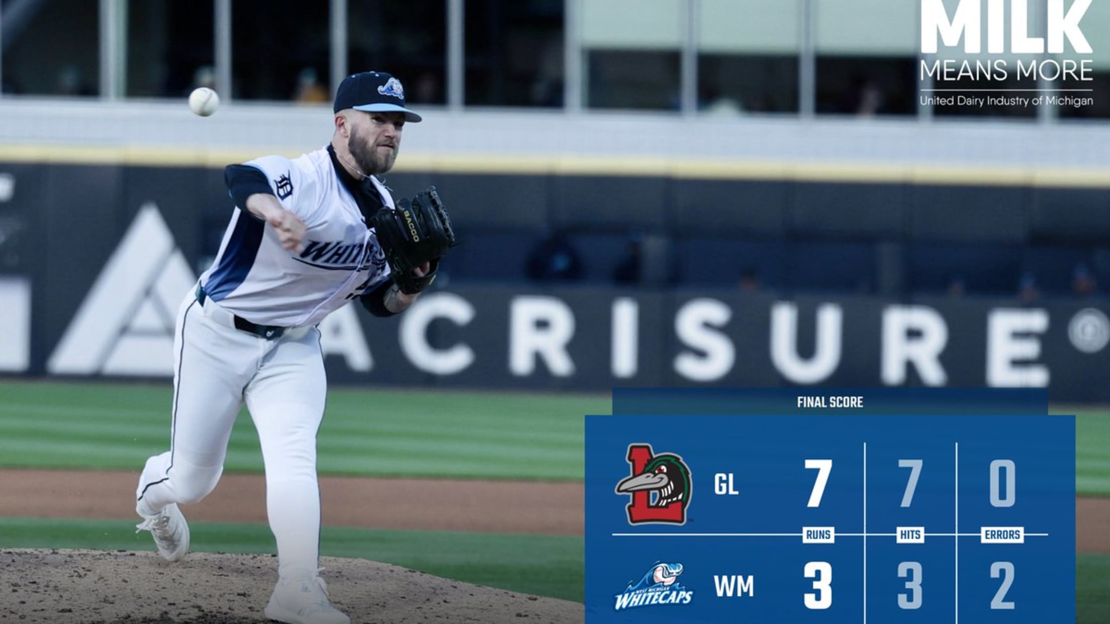 COMSTOCK PARK, MI – The West Michigan Whitecaps offense went cold as they dropped their home opener to the Great Lakes Loons, 7–3, in front of 4,352 fans on a chilly Tuesday night at LMCU Ballpark. The Whitecaps managed just three hits while finishing 1-for-7 with runners in scoring position—coming