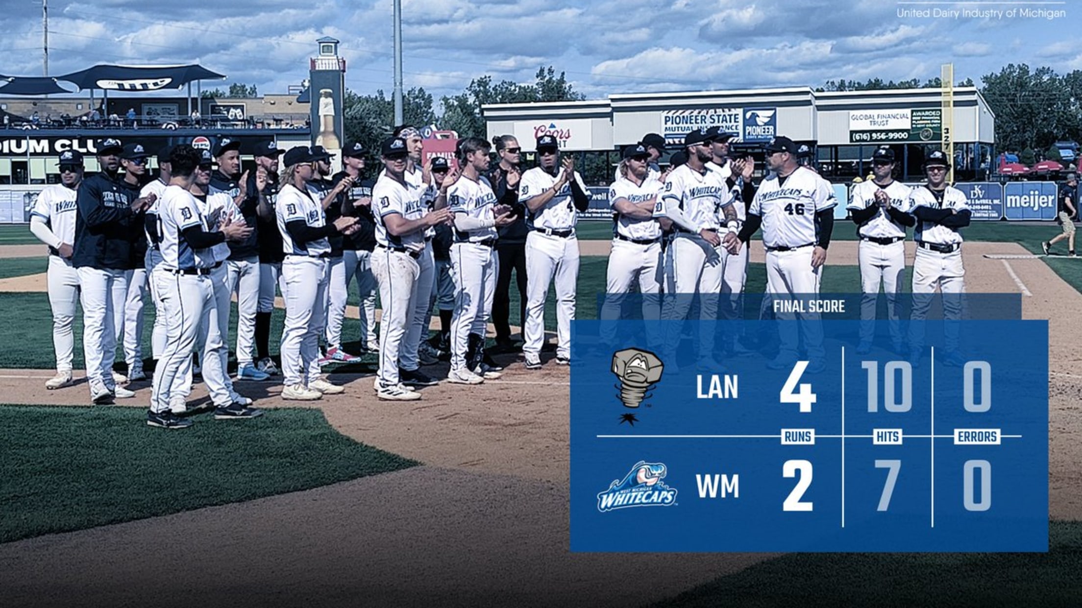 COMSTOCK PARK, MI — The West Michigan Whitecaps grabbed an early advantage but couldn’t hold on as an eighth inning three-run homer from TJ Schofield-Sam was the difference in a 4-2 loss to the Lansing Lugnuts in front of 7,048 fans Sunday afternoon at LMCU Ballpark.