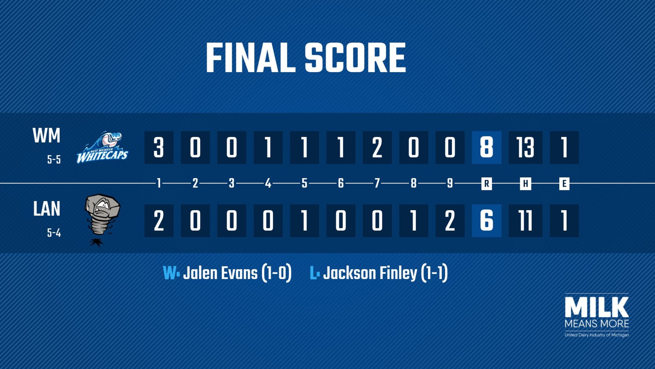 LANSING, MI – The West Michigan Whitecaps offense was clicking on all cylinders Tuesday night, as the team clubbed a season-high nine extra-base hits as part of an 8-6 win over the Lansing Lugnuts at Jackson Field.