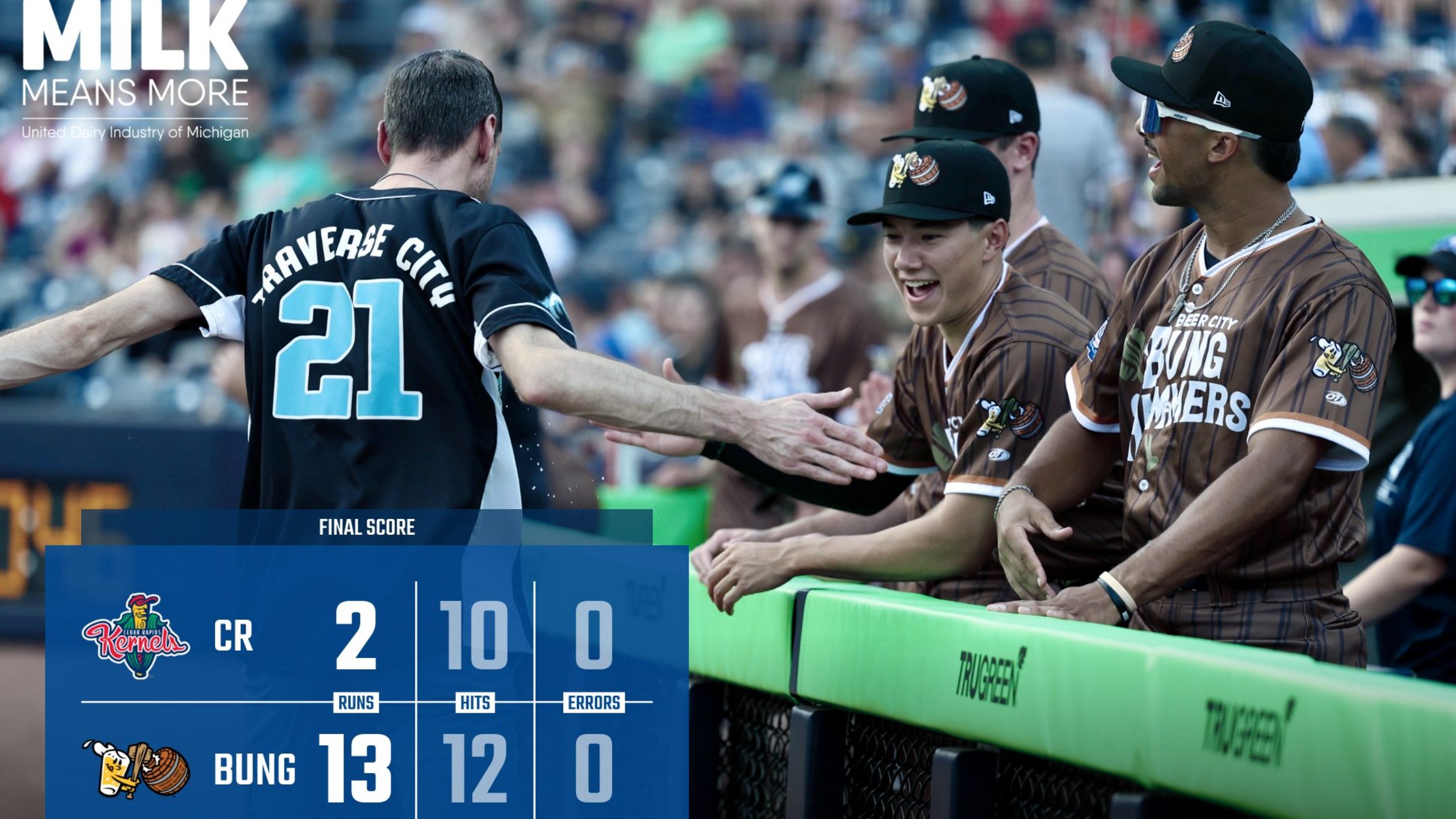 The Whitecaps have scored double-digit runs in 19 games this season, a new franchise record, as they finished 6-for-11 with runners in scoring position, including a pair of home runs from Jack Penney and Izaac Pacheco. Meanwhile, West Michigan held Cedar Rapids to 1-for-10 with runners in scoring position in the blowout win.