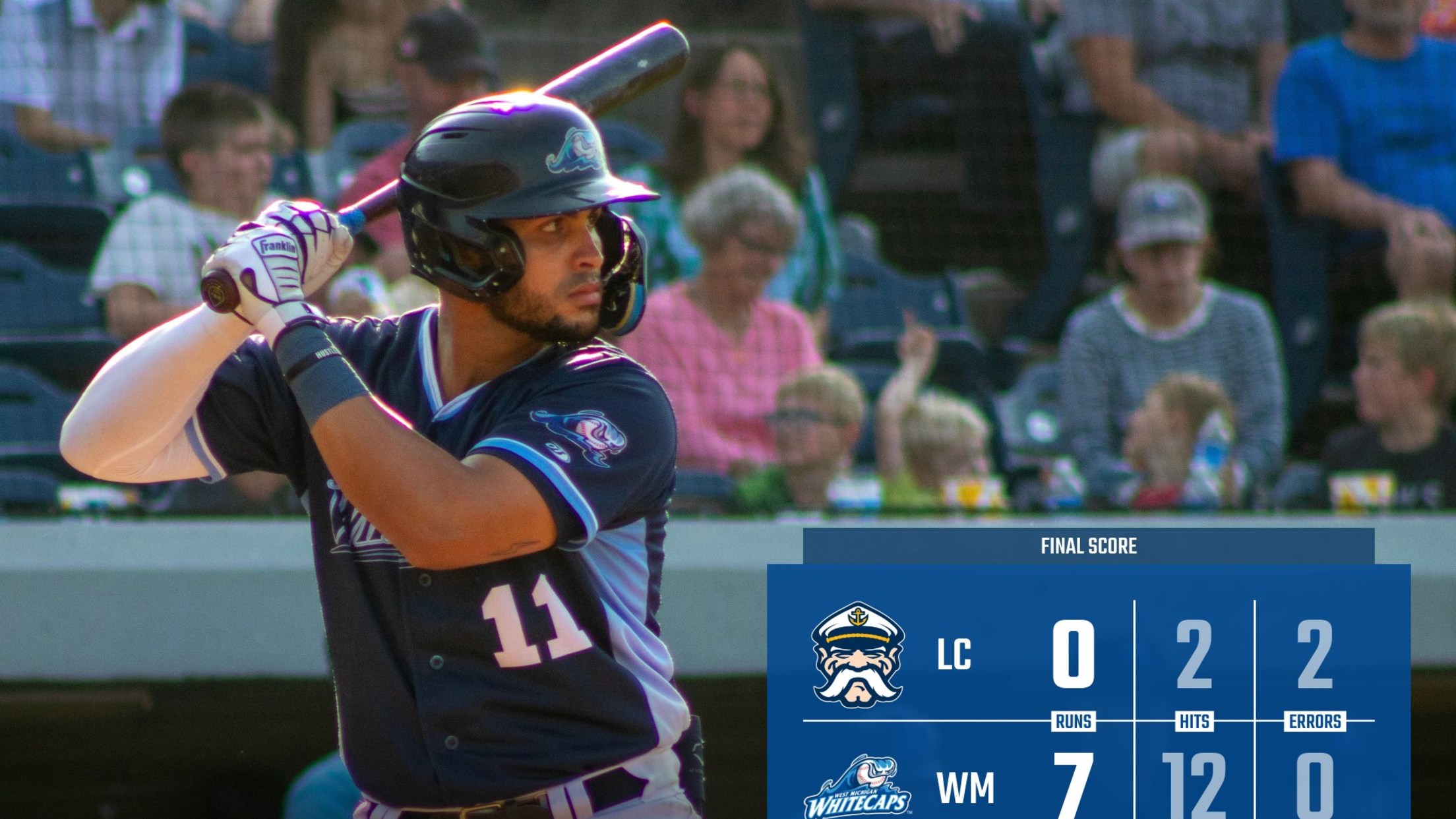 COMSTOCK PARK, MI – The West Michigan Whitecaps enjoyed a strong pitching performance as the offense delivered clutch hits late to rally past the Lake County Captains, setting a new season-long, five-game winning streak 6-3 in front of 6,903 fans Thursday night at LMCU Ballpark.
