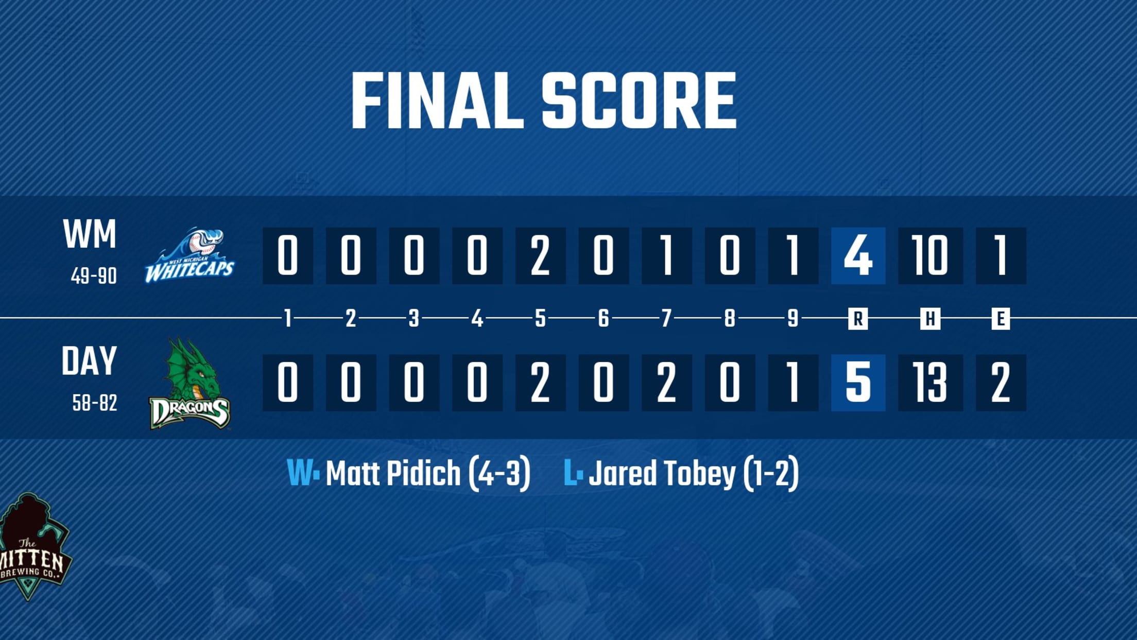 DAYTON, OH - The West Michigan Whitecaps were denied a season-best four-game winning streak as part of a 5-4 walk-off loss to the Dayton Dragons in front of 8,170 fans Monday afternoon at Fifth Third Field.