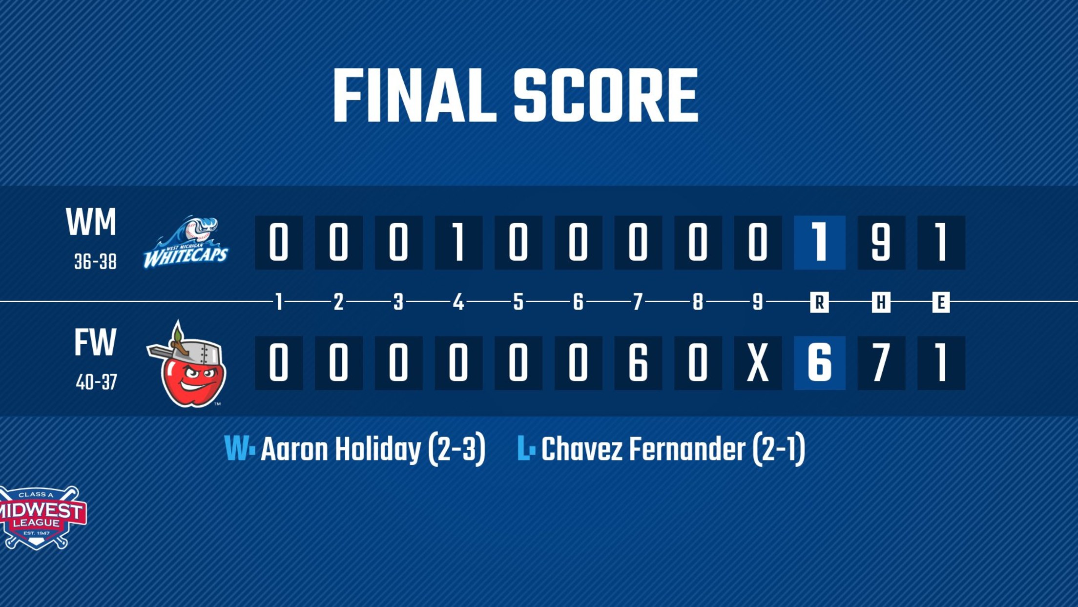 FORT WAYNE, IN – The West Michigan Whitecaps went 2-for-15 with runners in scoring position, and their bullpen was not at its best as part of a 6-1 loss to the Fort Wayne TinCaps on Wednesday in front of 3,613 fans at Parkview Field. The Whitecaps fall to a season-worst