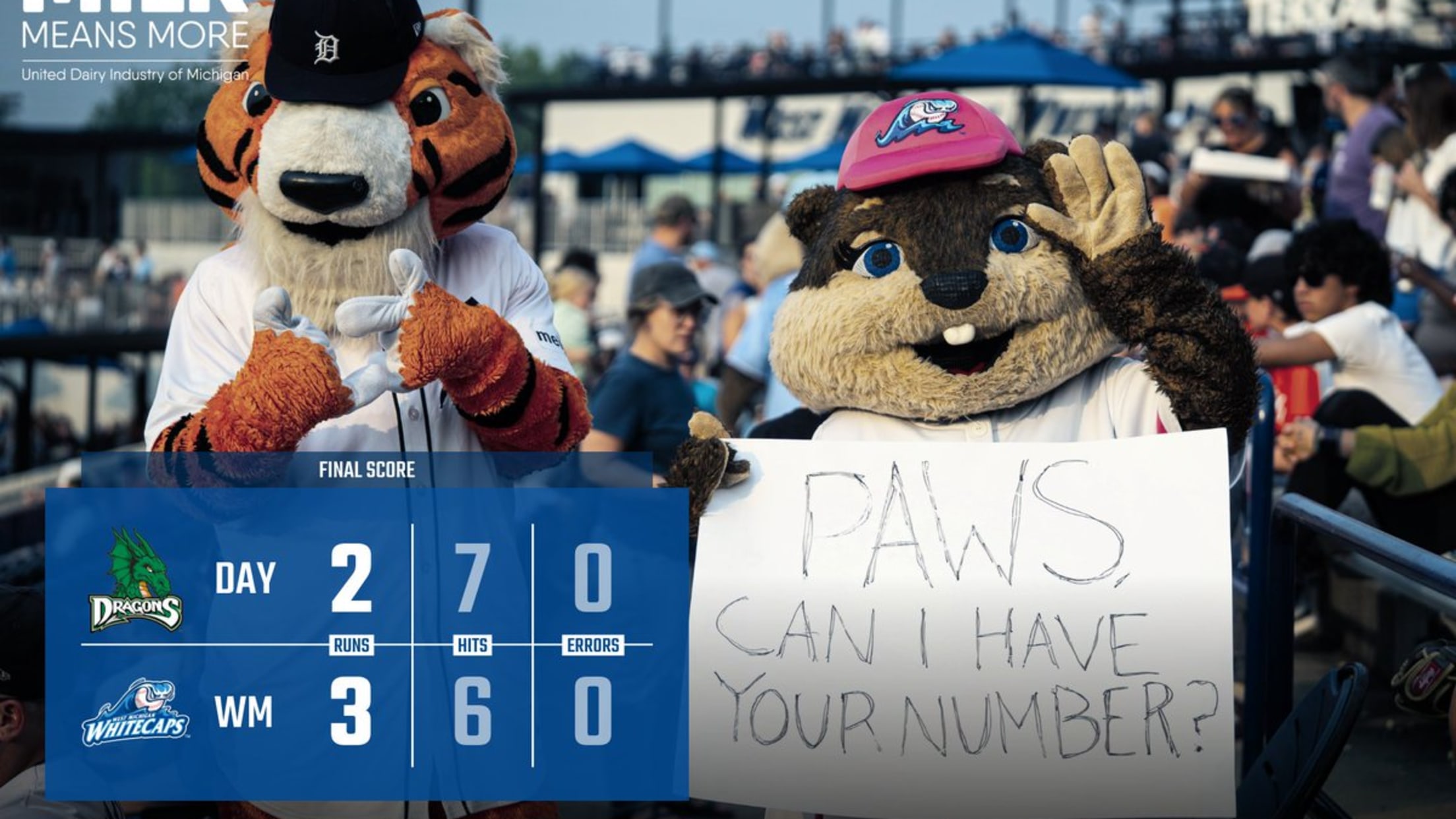 West Michigan struck first as Andrew Jenkins blasted a two-run homer over the left field wall in the first inning, putting the ‘Caps in front 2-0. Dayton sliced the lead in half in the second as infielder Victor Acosta plated Jack Moss on an RBI single, 2-1. Neither team could generate any offense past the second inning, as Dayton put just three baserunners on through the seventh while the Whitecaps put just four runners on base. Dayton finally broke through in the eighth as outfielder Anthony Stephan added his second home run of the series, a solo blast, tying the game at two. West Michigan responded in the bottom half, as Murr added his triple before a sacrifice fly from Izaac Pacheco sent him home, inching in front of Dayton 3-2. Dayton couldn’t rally in the ninth, as ‘Caps closer Dariel Fregio set down the Dragons to secure his first save and send West Michigan to the 3-2 win.